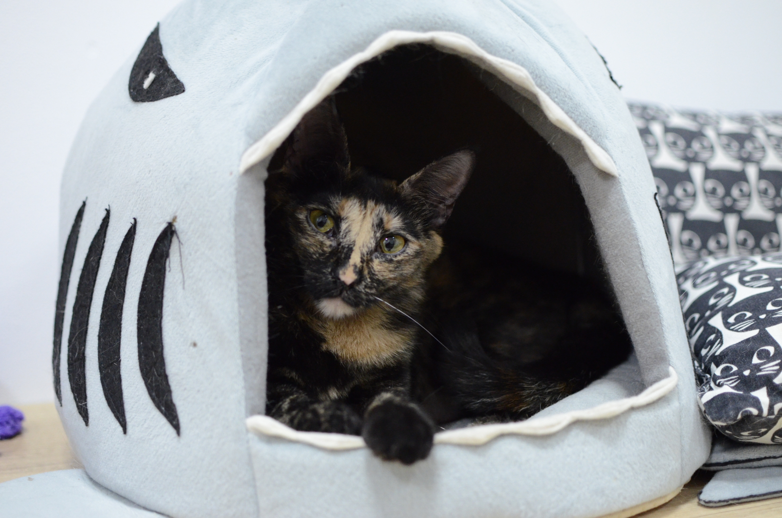 Si deseas conocer a Tatin, puedes visitarla en nuestro cat café. Te lo pasarás muy bien jugando con ella con las cañas y las pelotitas.