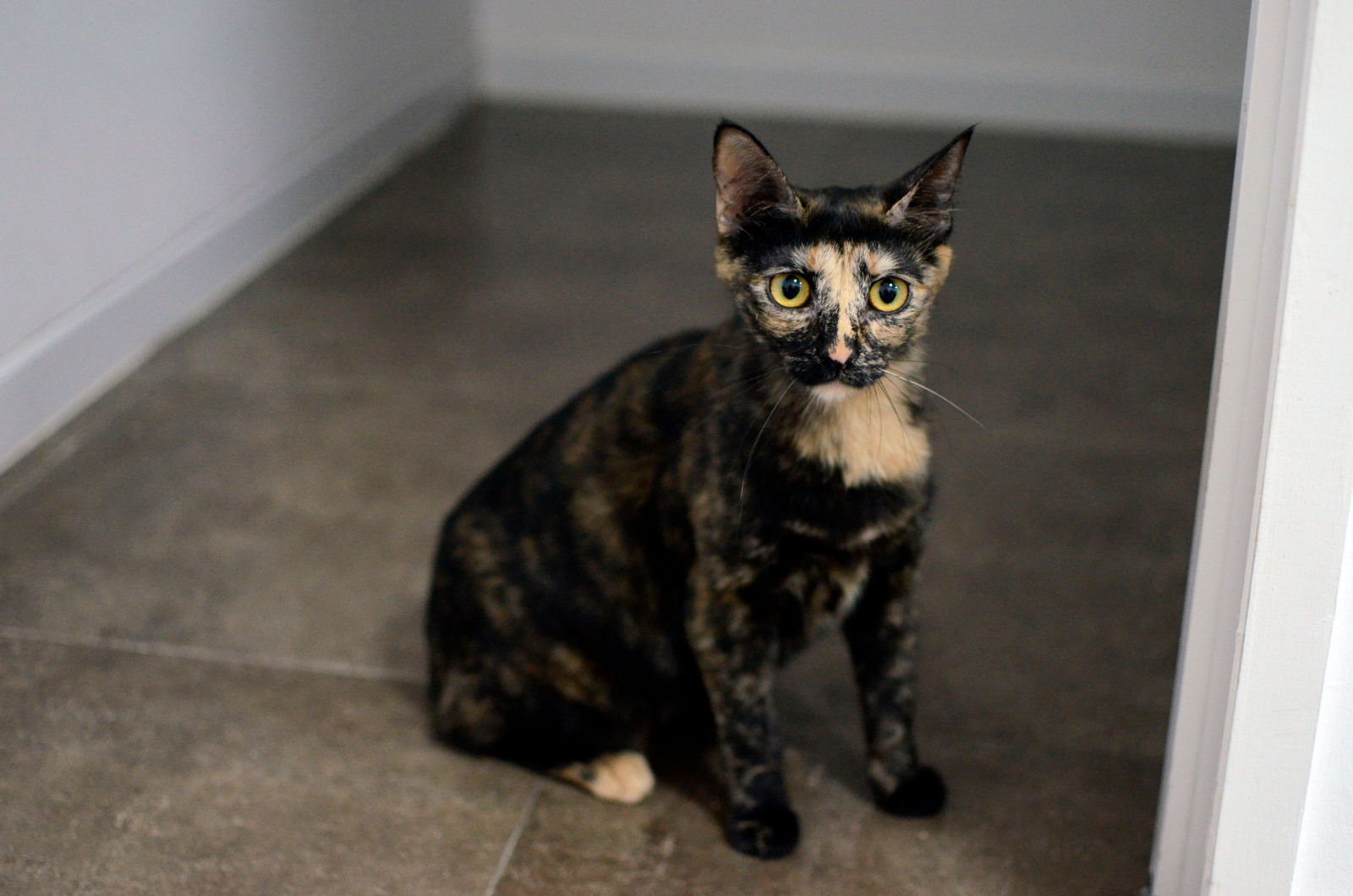 Tatin ha tenido la suerte de crecer al lado de sus hermanos, su mamá y compartir espacio con otros gatos y perros. Se lleva bien con todos, también con niños. Es una gatita muy vivaracha, parlanchina y sociable.