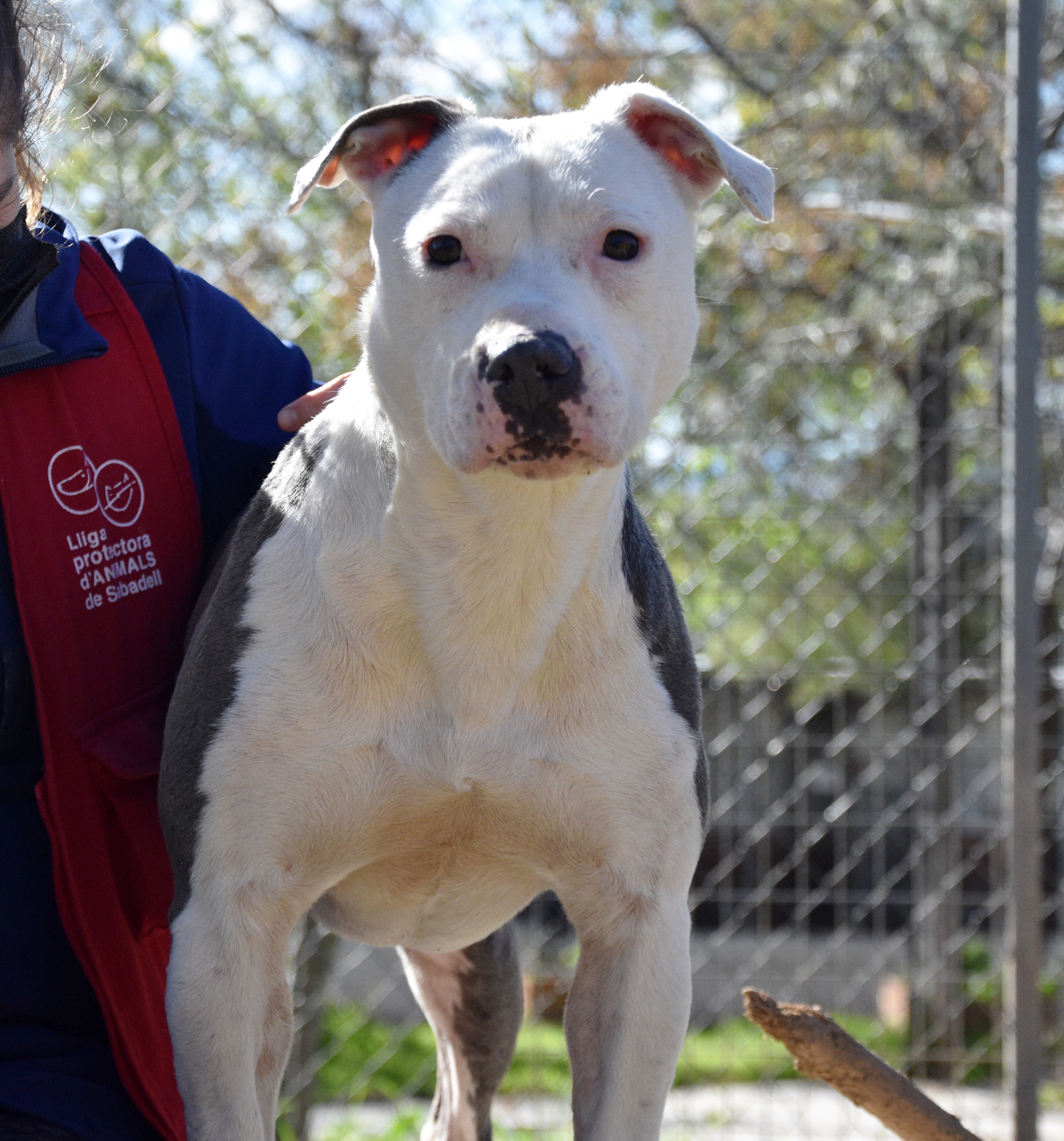 Riga llegó a la protectora junto con sus hermanos Hércules y Mora. Tenían solo 8 meses y ya conocían el peor lado del abandono. Riga es un amor con personas, muy cariñosa y simpática, siempre buscando un mimo a cambio de un lametón. Convive, a ratos, con otro perro y se relacionan bien, pero con perros desconocidos es un poco selectiva, se deben hacer las presentaciones poco a poco. Riga es positiva en Leishmania, pero tiene la enfermedad controlada gracias a una medicación diaria. Por razón de su raza, necesita seguro y licencia para Perros Potencialmente Peligrosos.