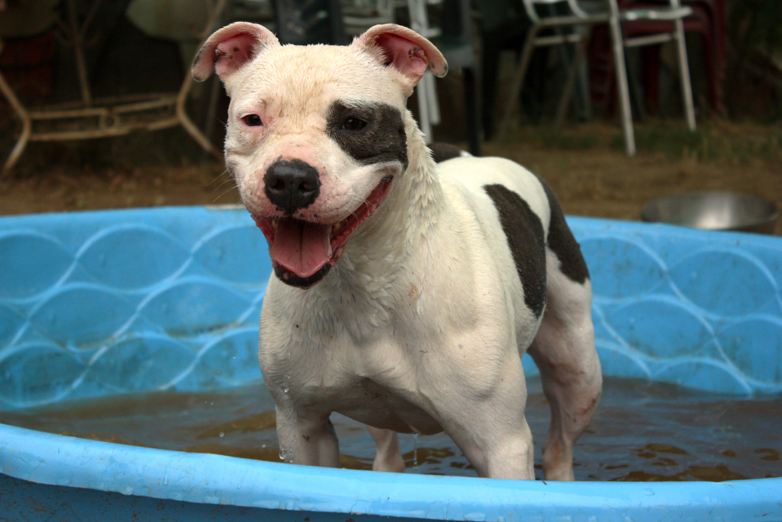 Frida llegó con la que creemos que era su madre, Pam. No lleva muy bien vivir en el refugio y tiene un estrés bastante elevado. Por ello, le cuesta estar con otros perros en un patio, se deben hacer bien las presentaciones. Con personas es cariñosa y juguetona. Por razón de su raza, necesita seguro y licencia para Perros Potencialmente Peligrosos.