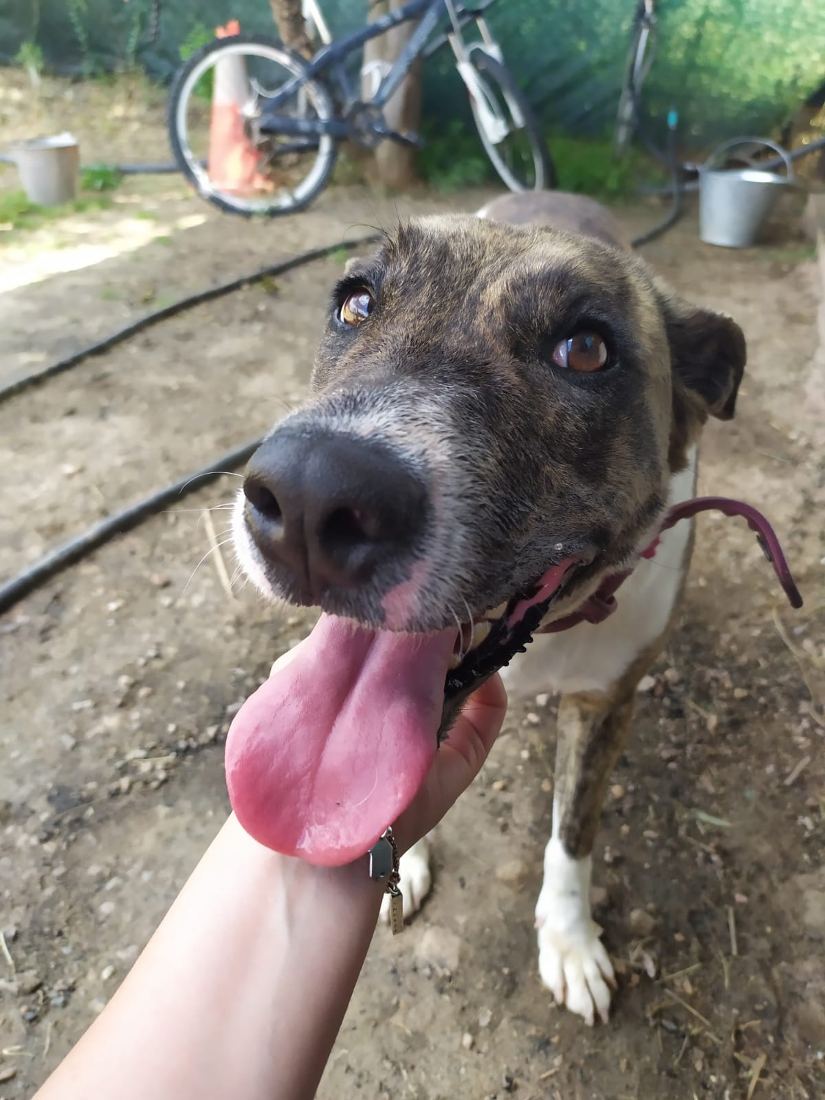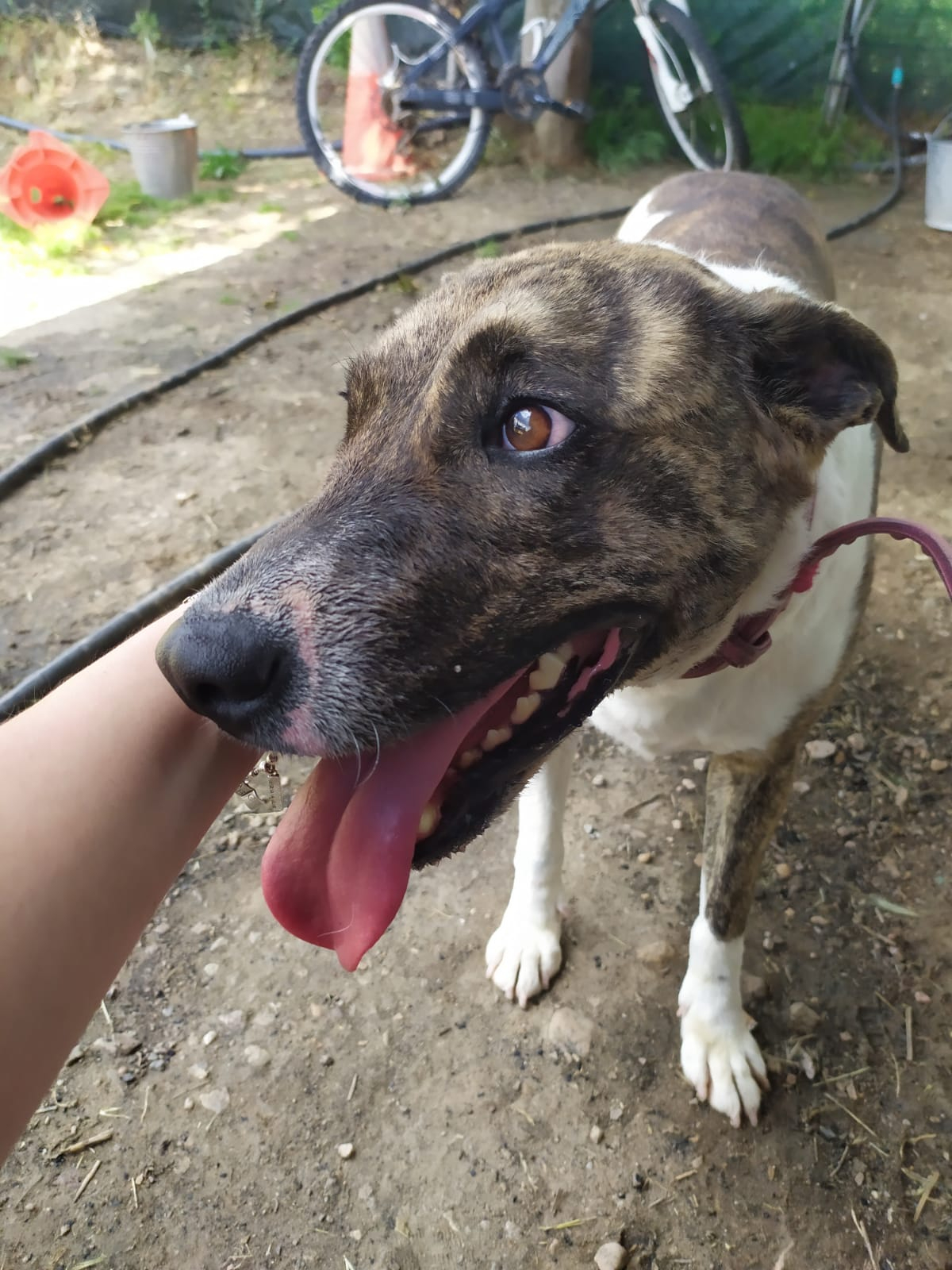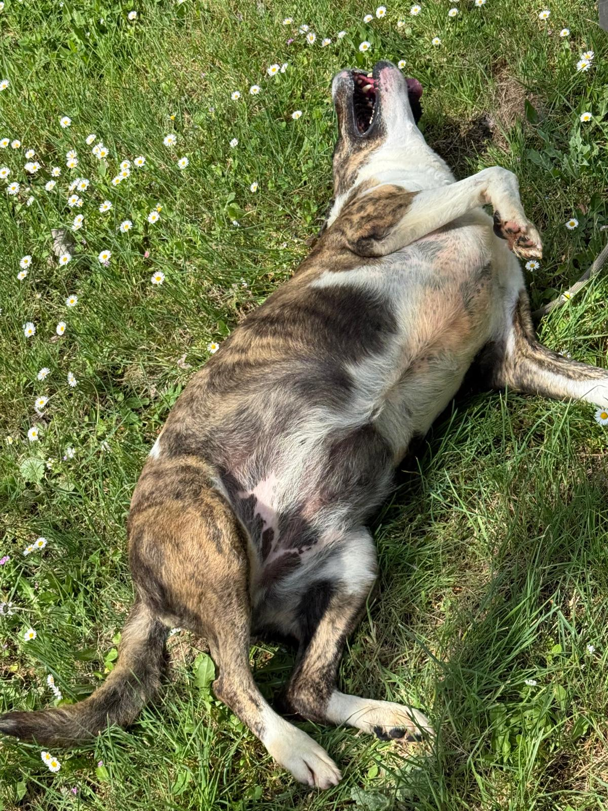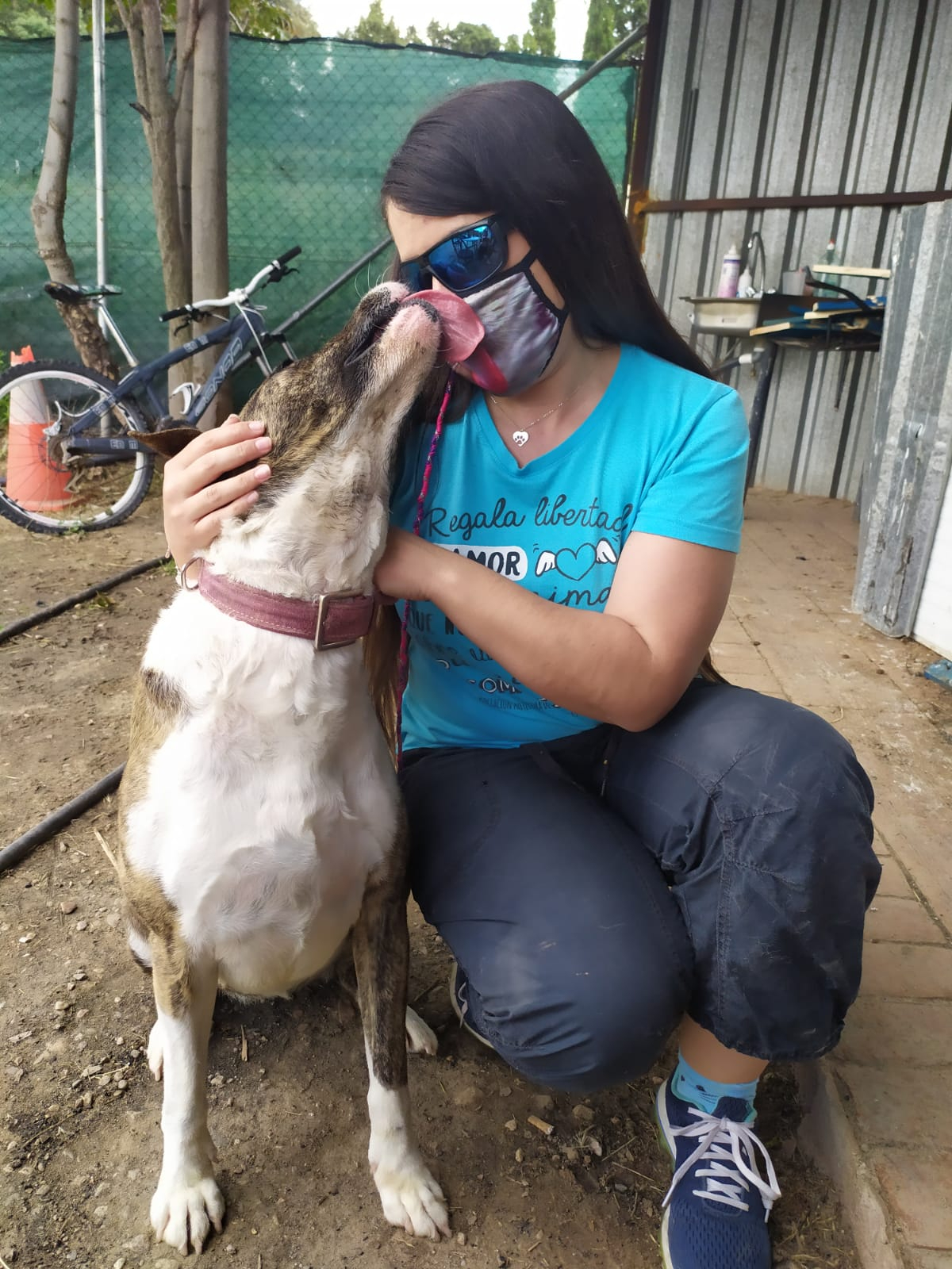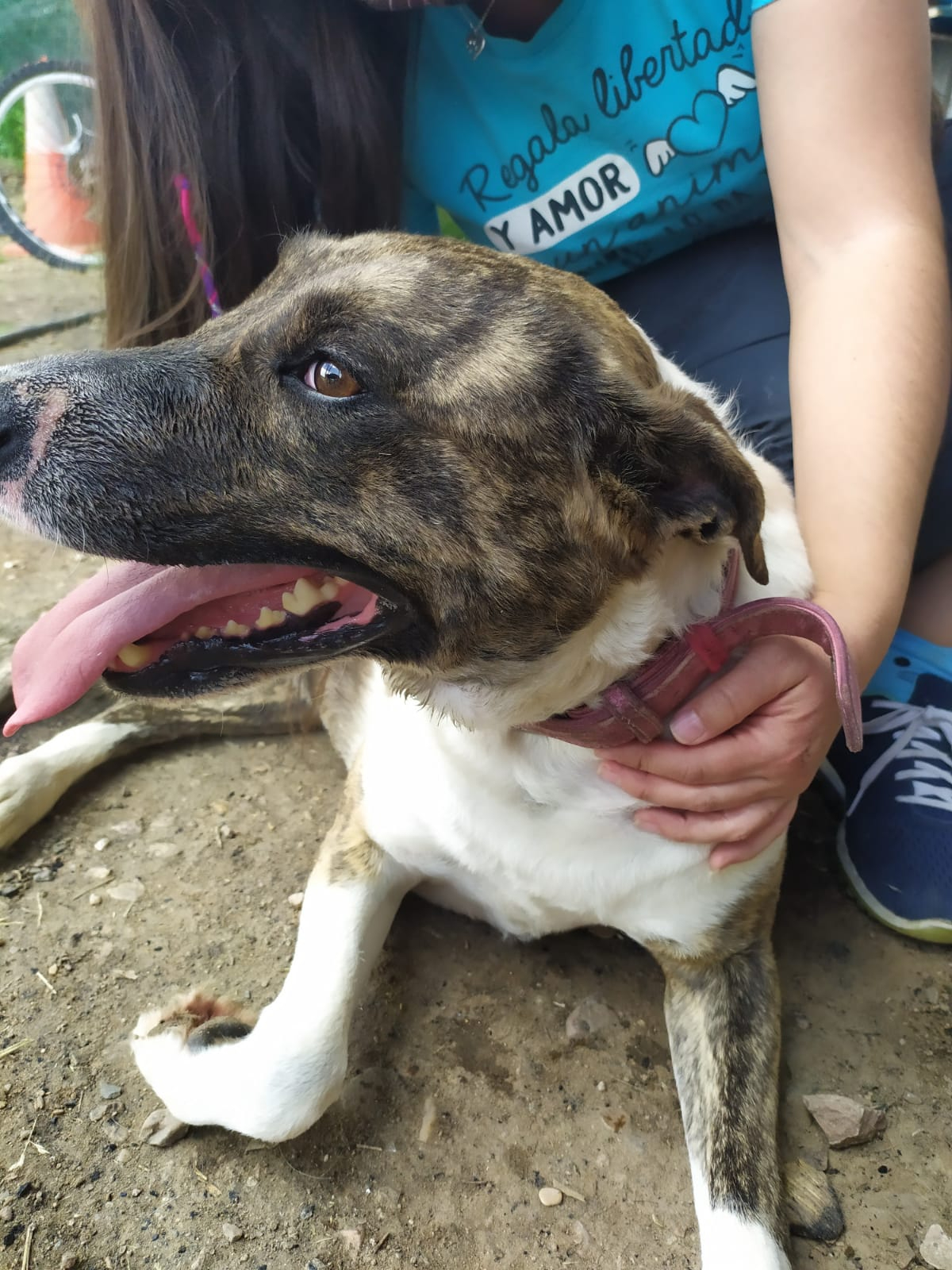 Durante meses hemos estado trabajando con ella en su rehabilitación y su adiestradora le ha dado el alta, porque os aseguramos que es una perra de diez. Es cariñosa y juguetona a más no poder, y aunque no es compatible con gatos, ella es sociable con otros perros. En casa quiere ser hija única.