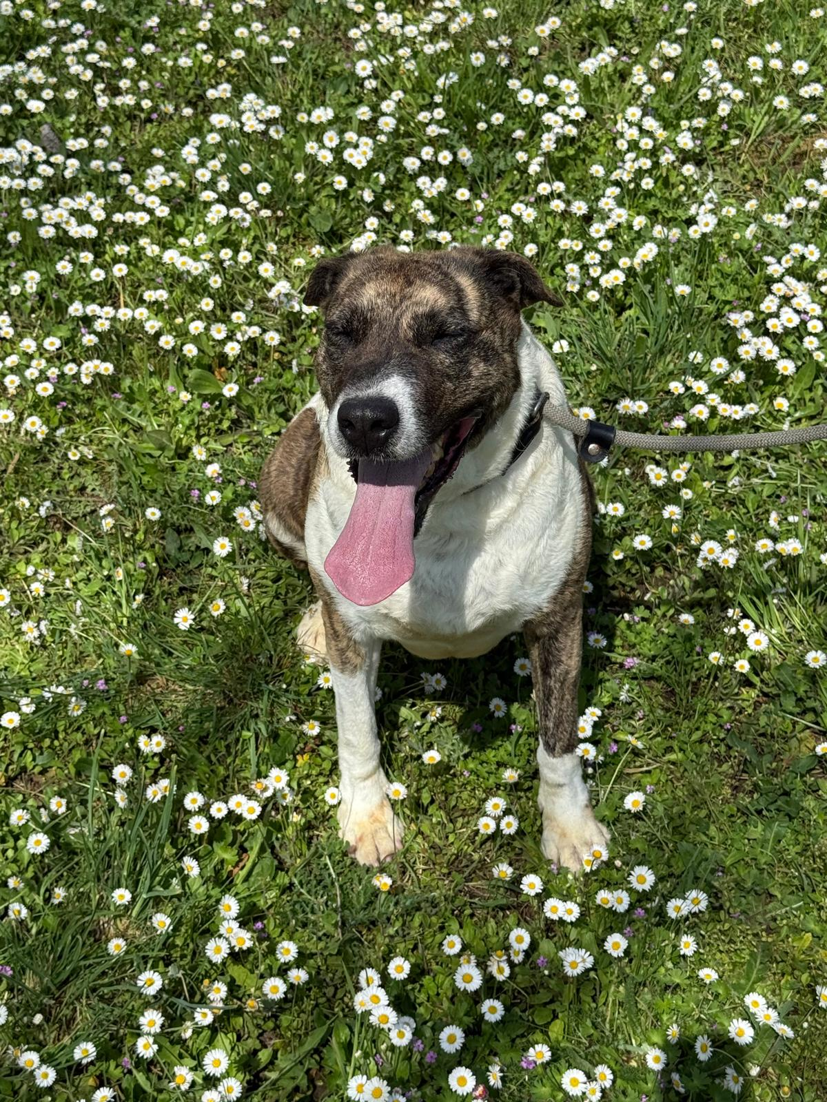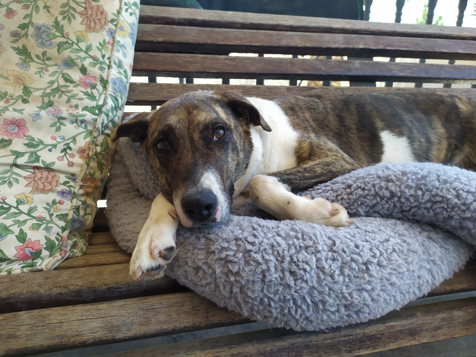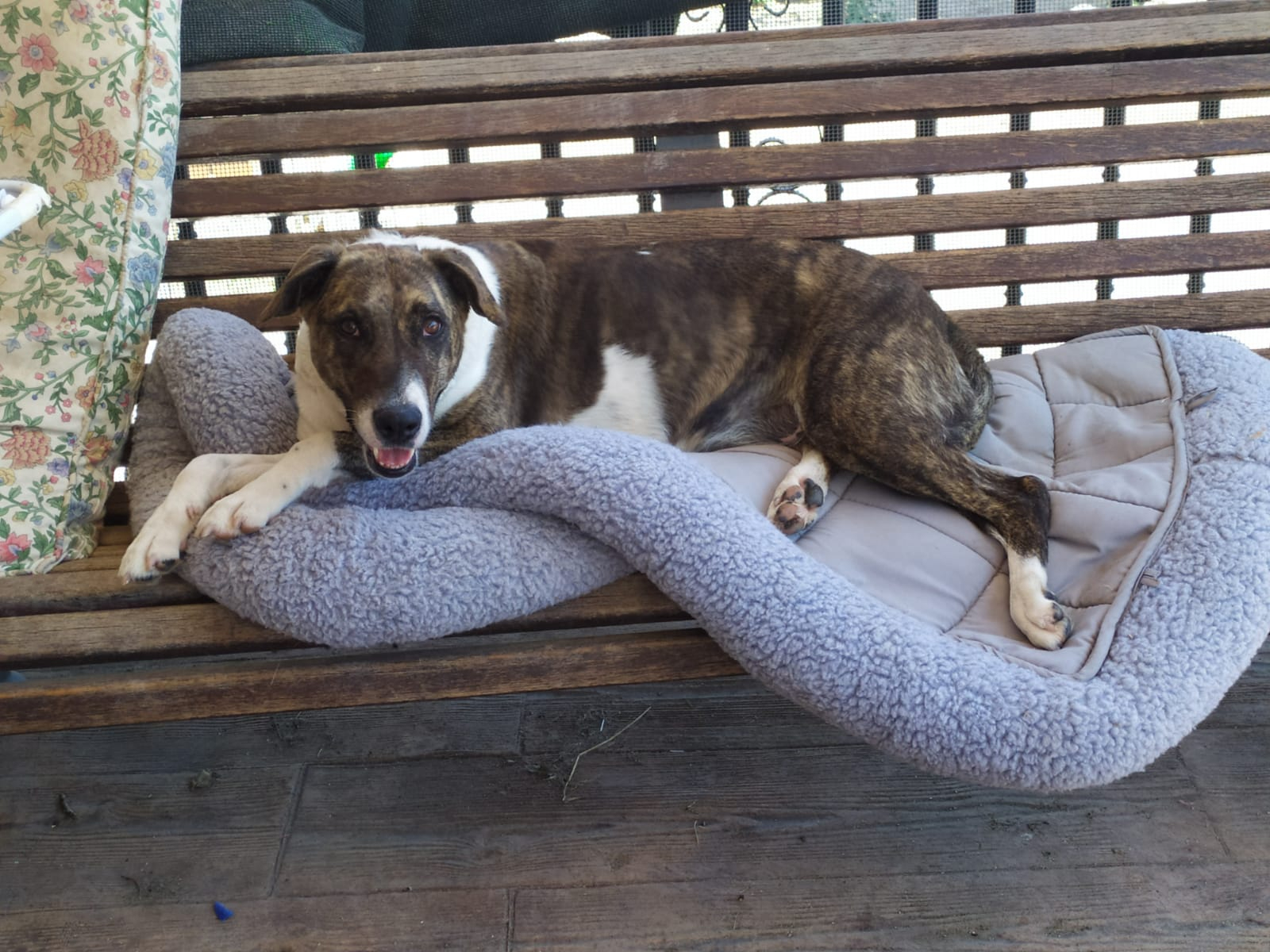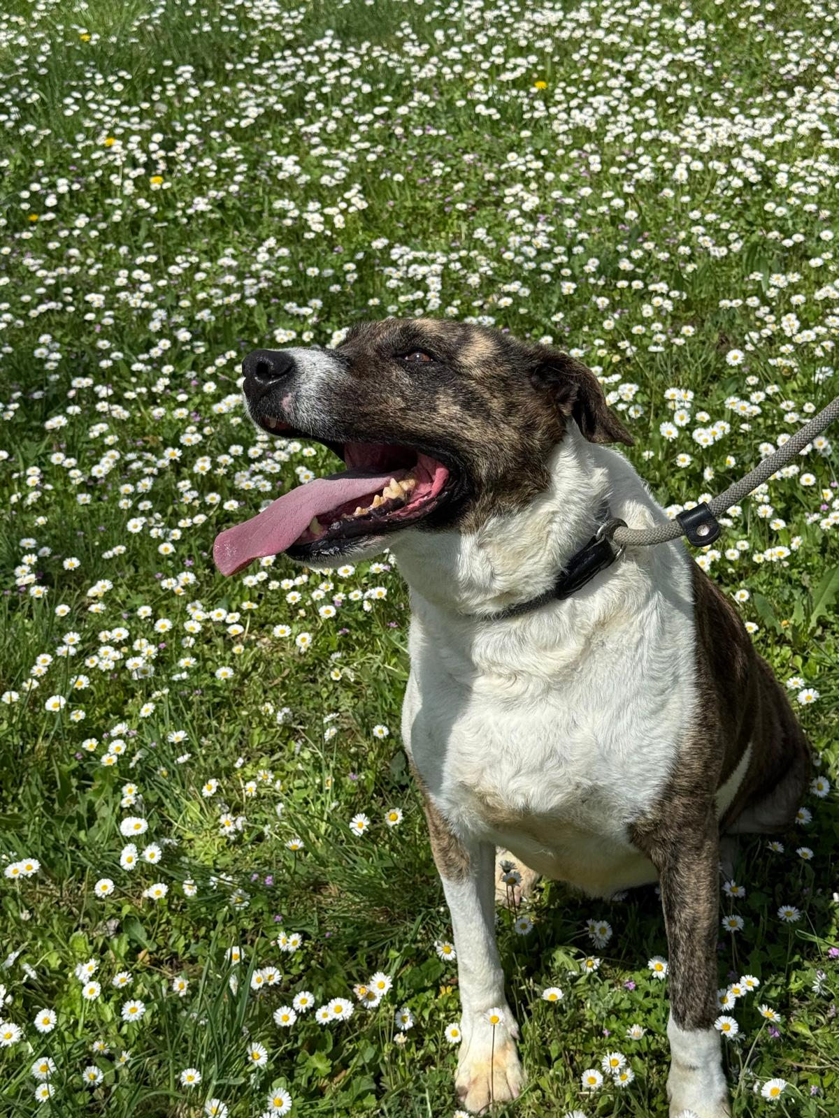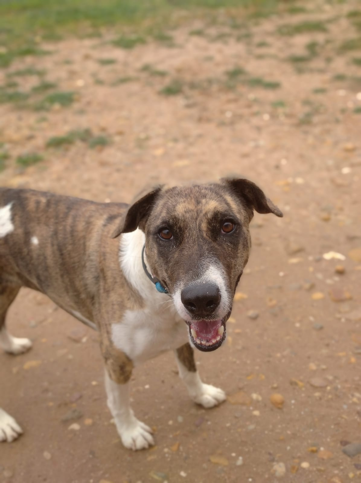 Durante meses hemos estado trabajando con ella en su rehabilitación y su adiestradora le ha dado el alta, porque os aseguramos que es una perra de diez. Es cariñosa y juguetona a más no poder, y aunque no es compatible con gatos, ella es sociable con otros perros. En casa quiere ser hija única.