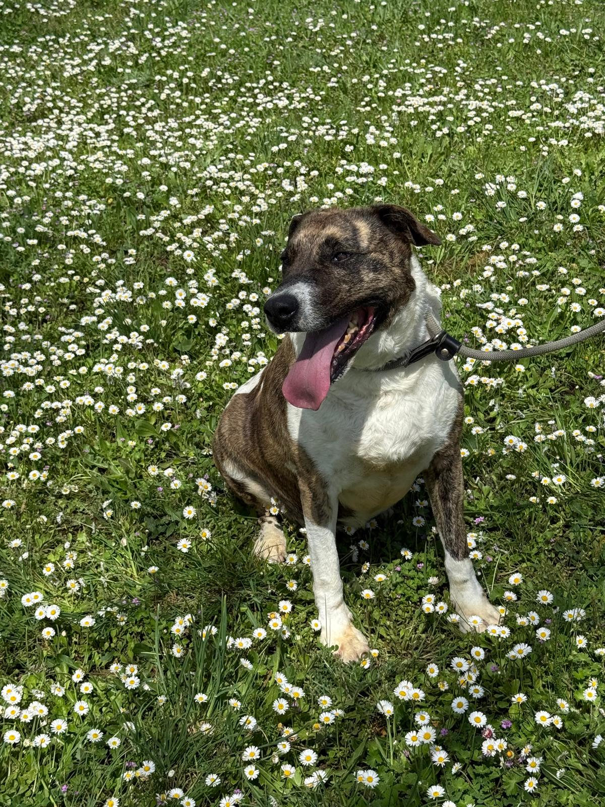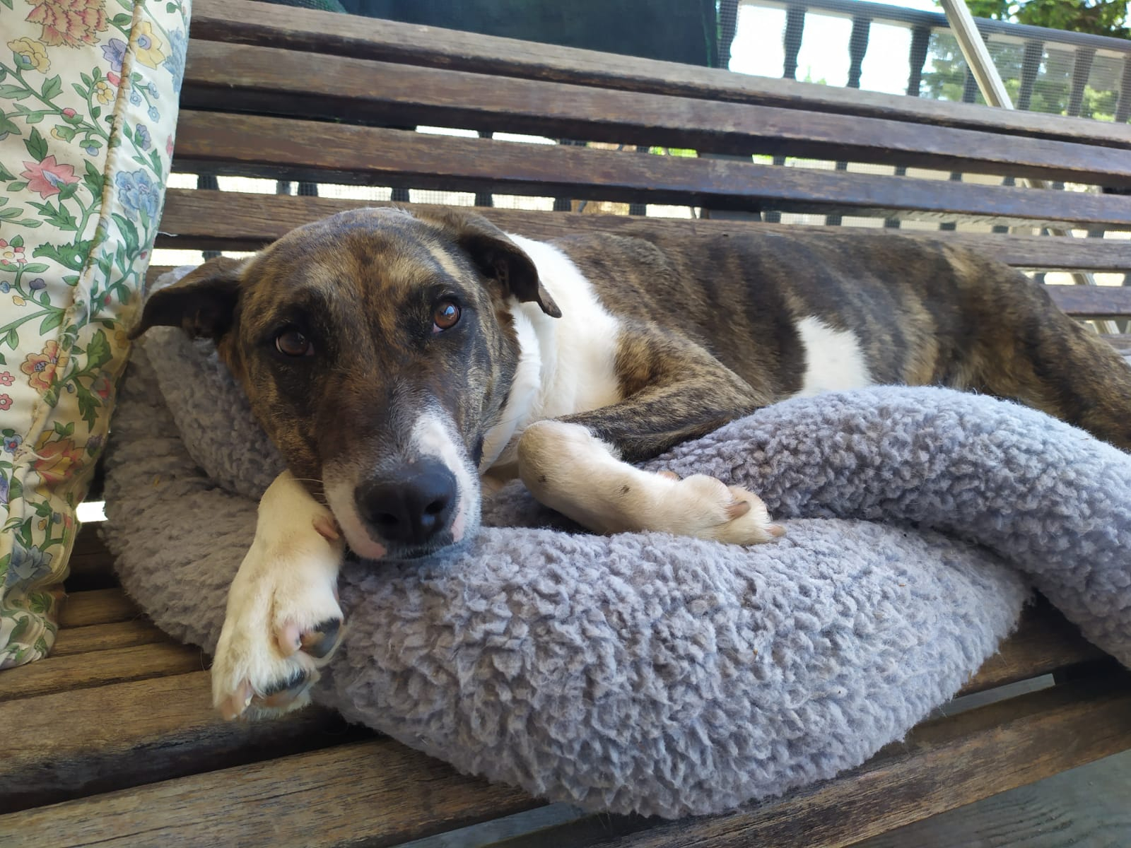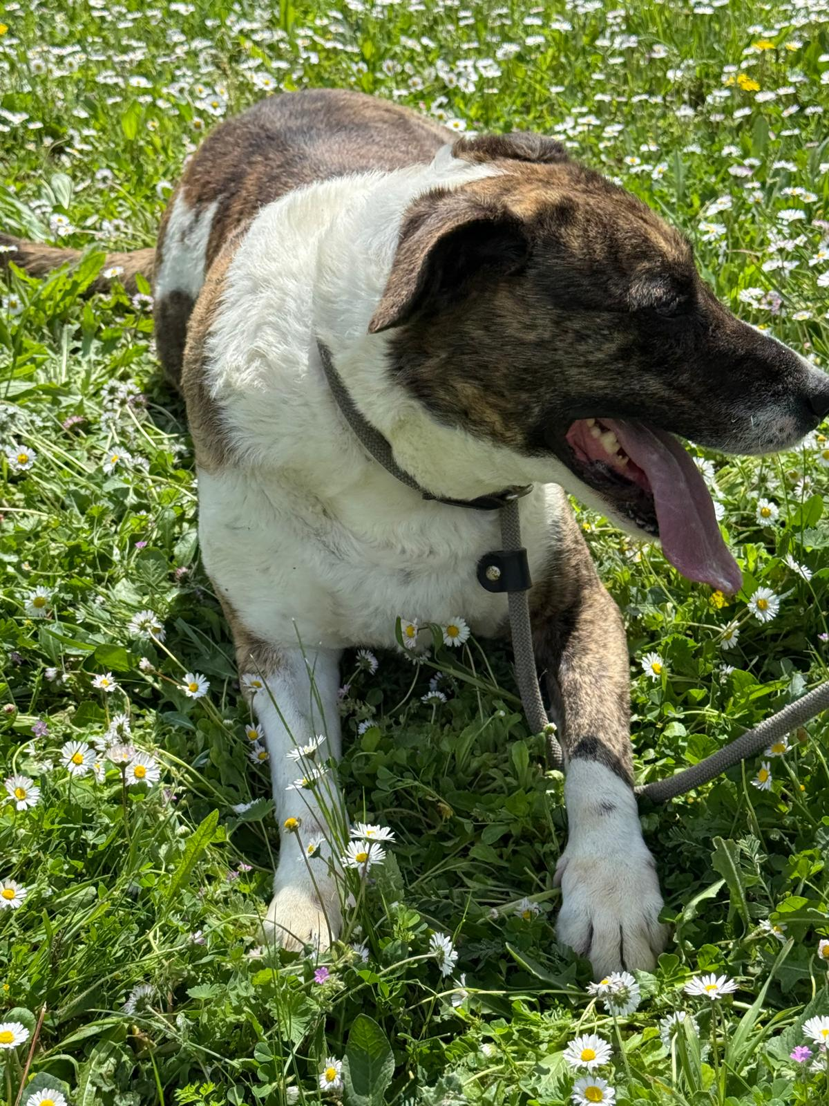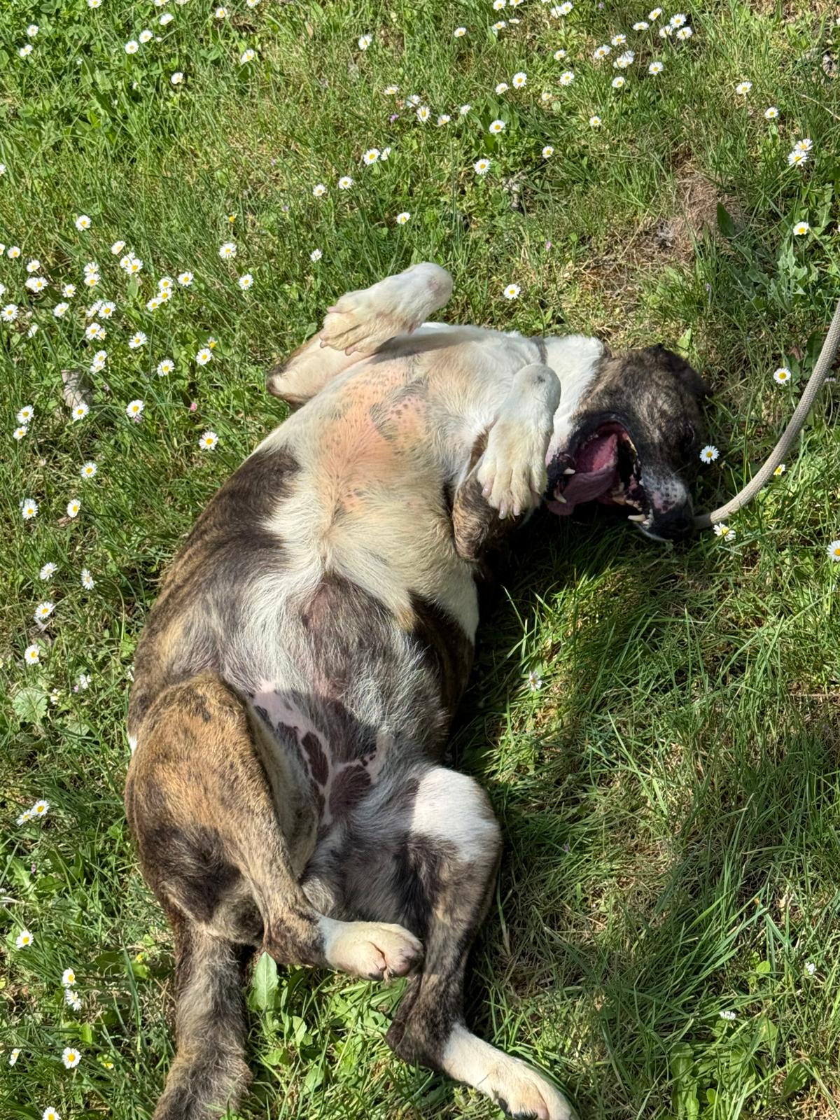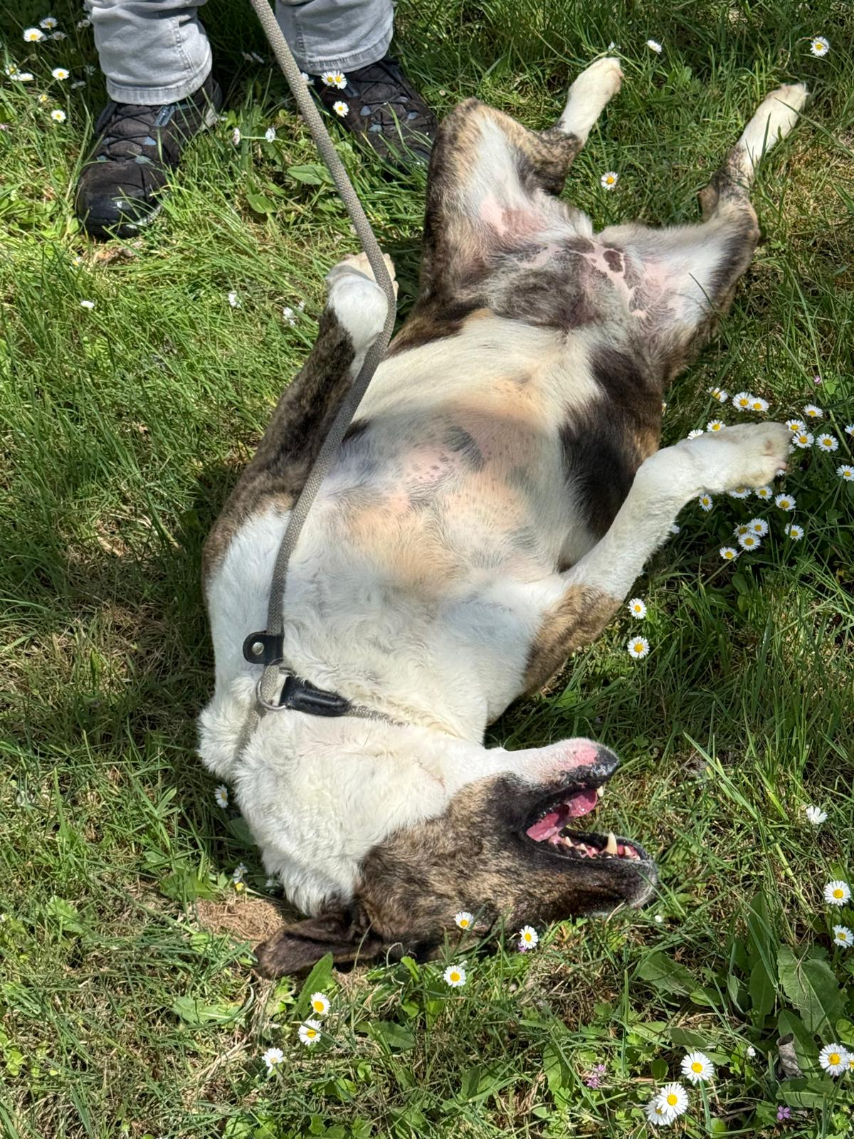 Durante meses hemos estado trabajando con ella en su rehabilitación y su adiestradora le ha dado el alta, porque os aseguramos que es una perra de diez. Es cariñosa y juguetona a más no poder, y aunque no es compatible con gatos, ella es sociable con otros perros. En casa quiere ser hija única.