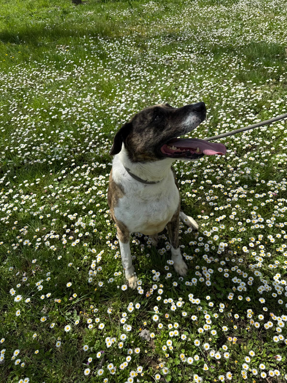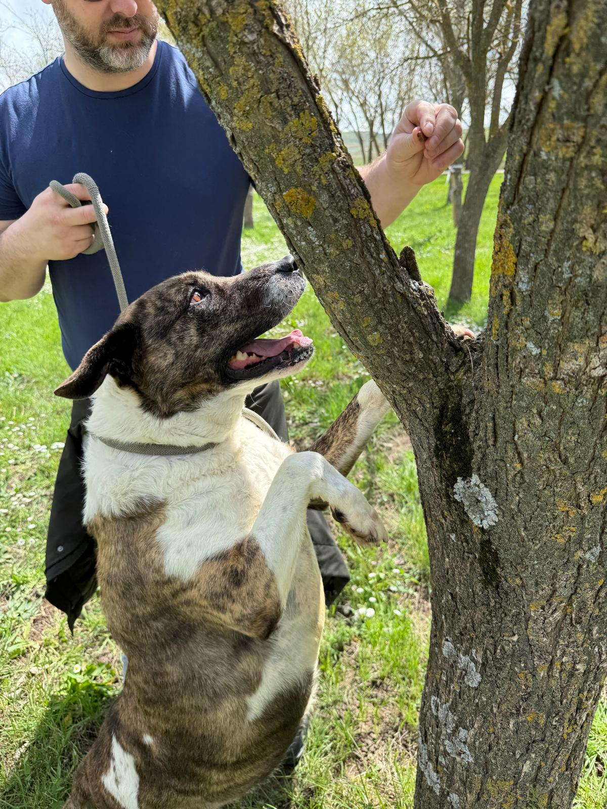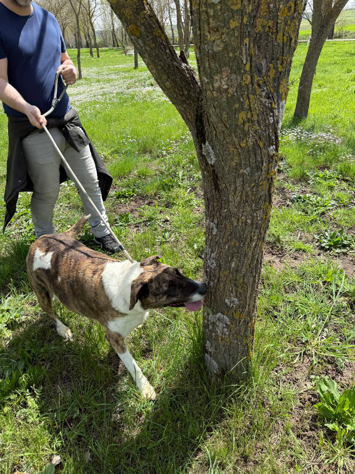Actualmente es mucho más confiada, le encanta recibir caricias, atiende cuando se le llama, se alegra de que estés con ella. No tira nada de la correa, y es muy juguetona.