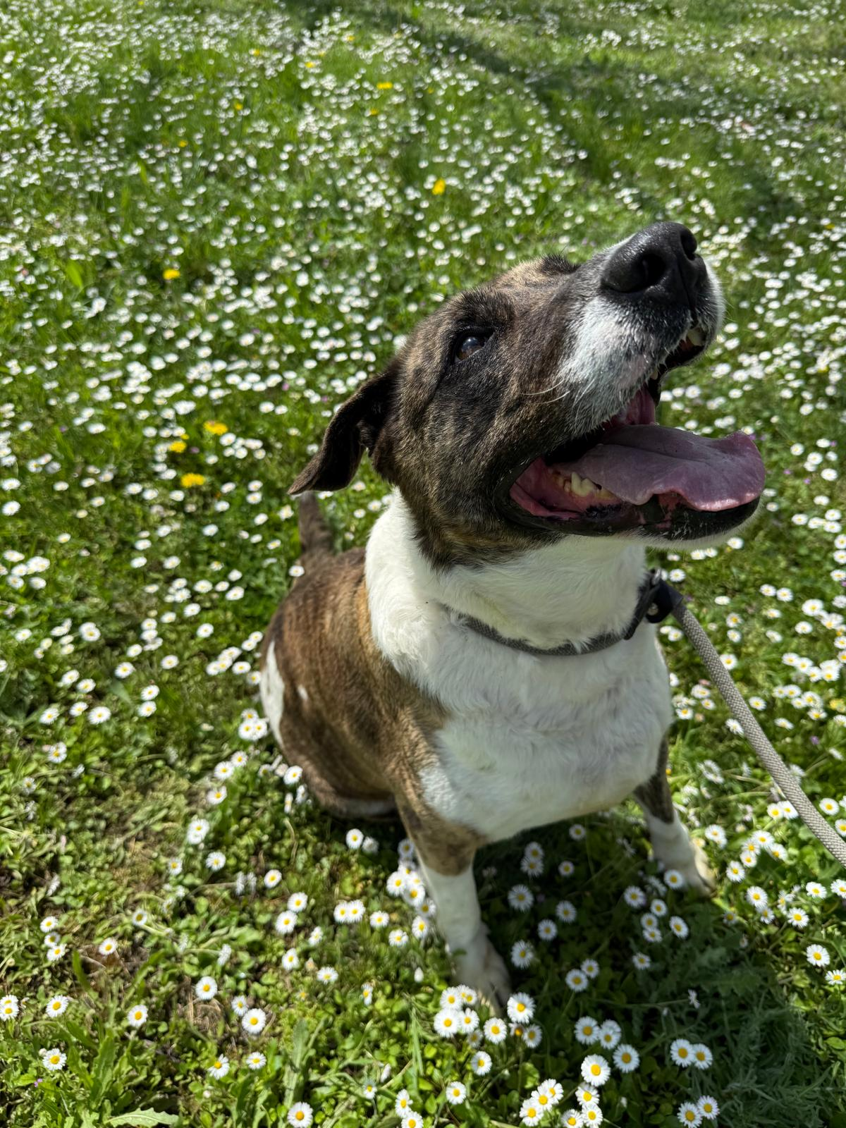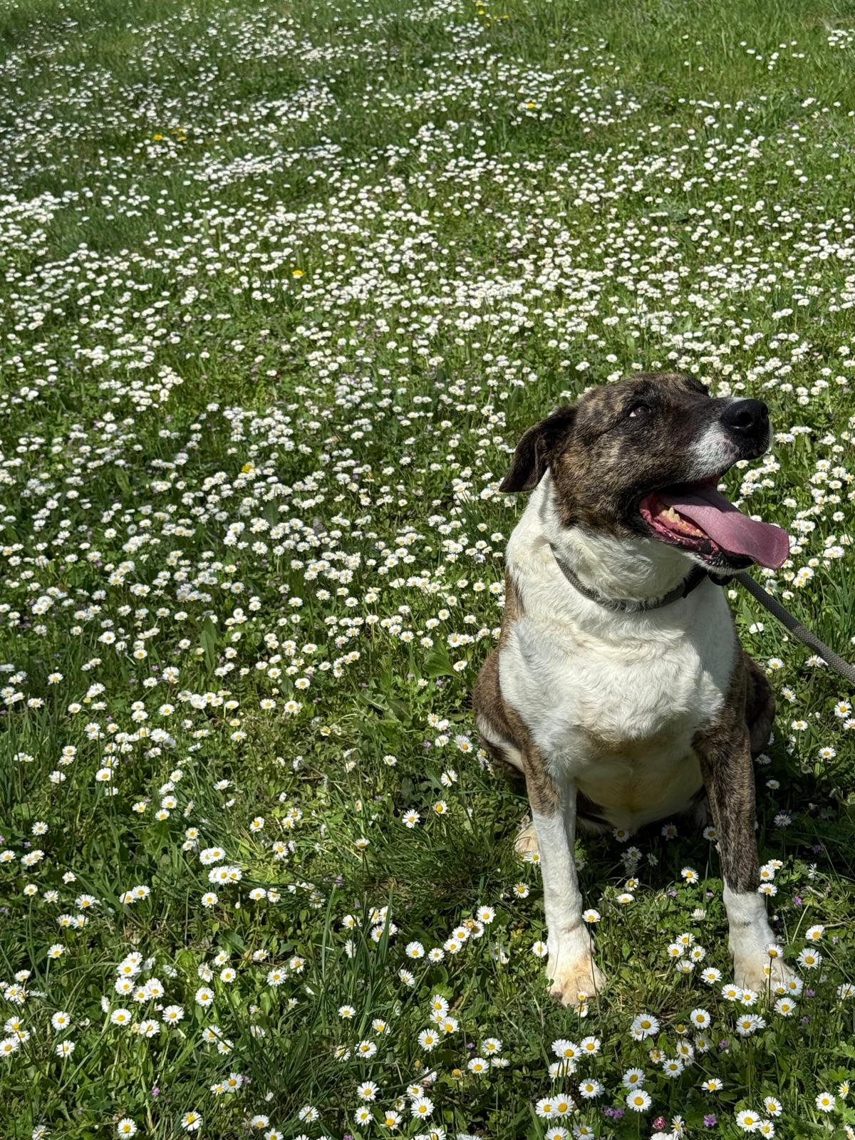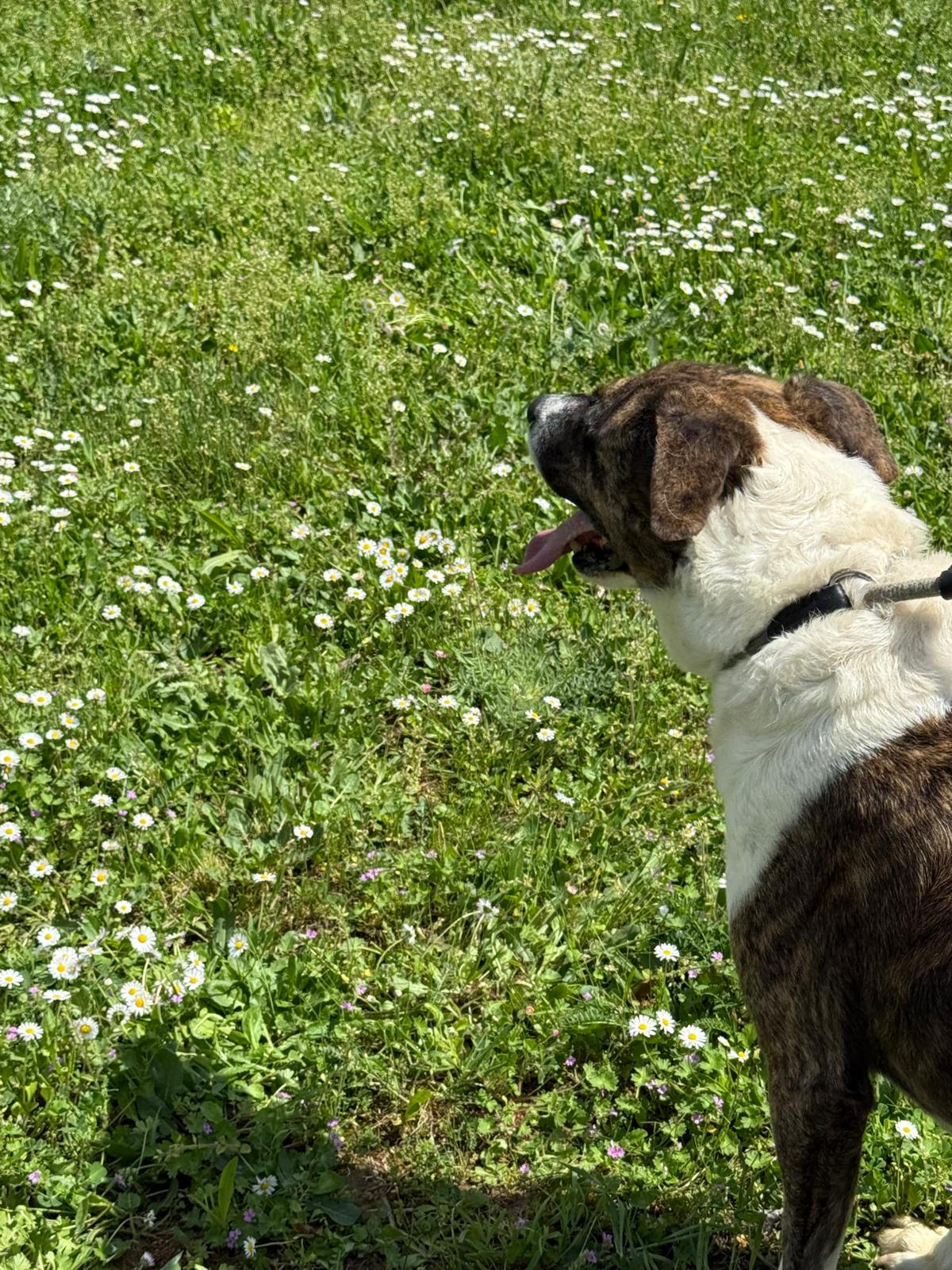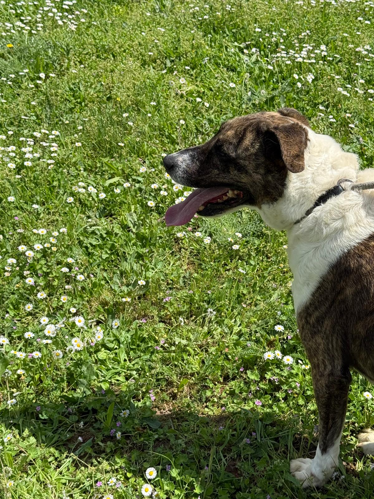 Actualmente es mucho más confiada, le encanta recibir caricias, atiende cuando se le llama, se alegra de que estés con ella. No tira nada de la correa, y es muy juguetona.