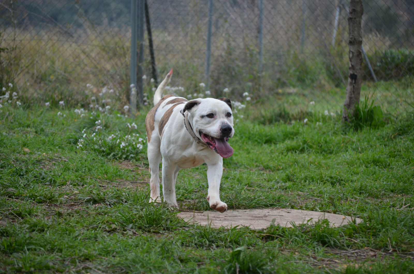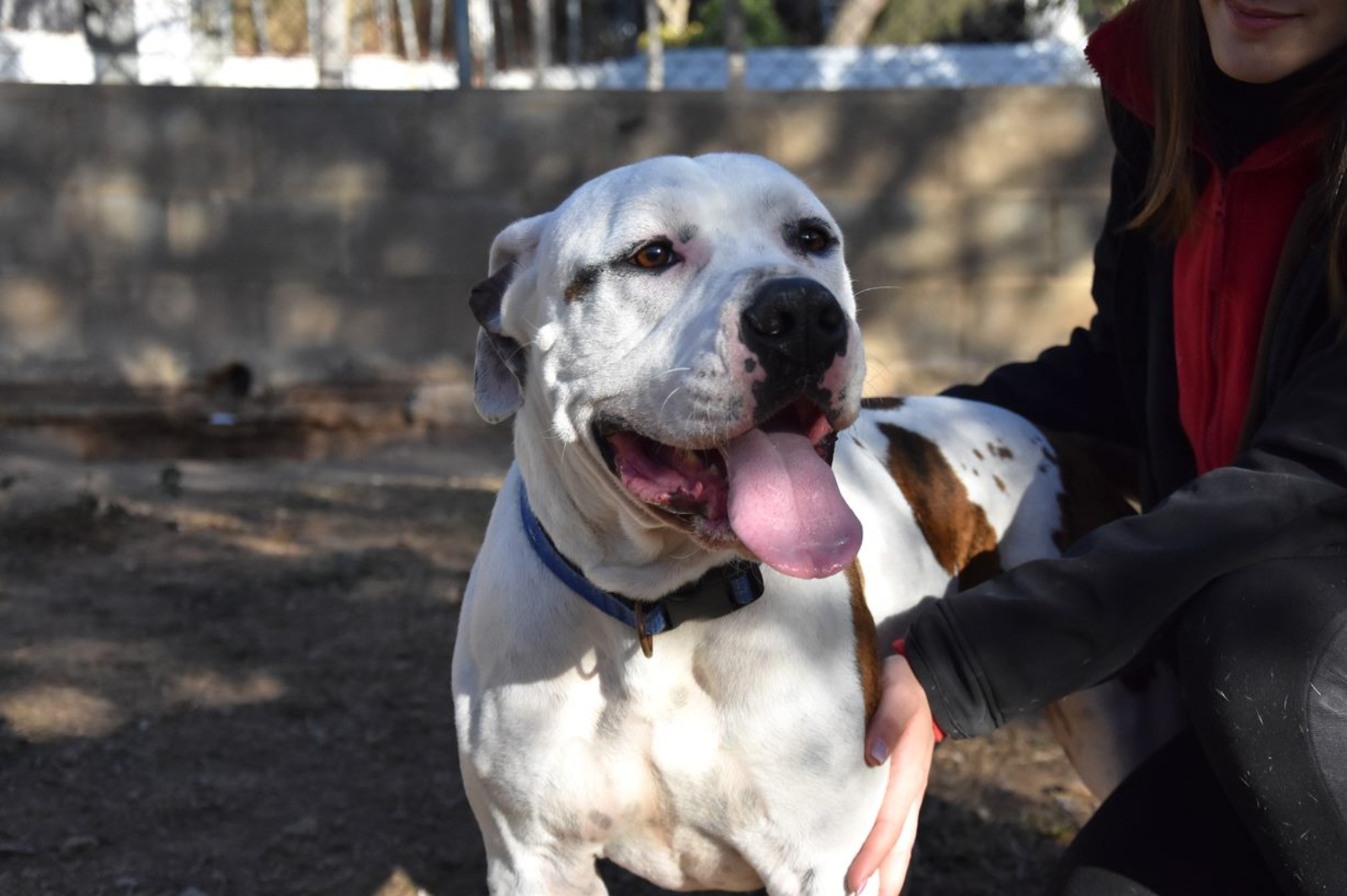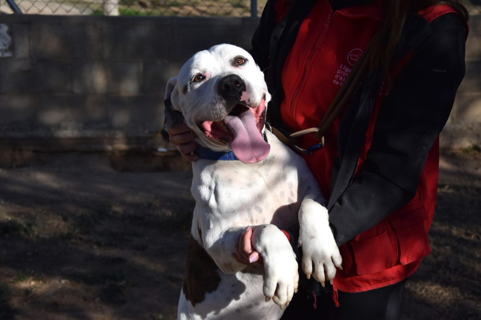 A Roure lo encontramos junto con otro perrete, Roig, que ha tenido más suerte que él, y ha sido adoptado ya. Él espera aún su oportunidad. Todo lo que tiene de grande y cabezón, lo tiene de bueno y cariñoso. Se relaciona perfectamente tanto con otros perros como con personas. Por razón de su raza, necesita seguro y licencia para Perros Potencialmente Peligrosos.