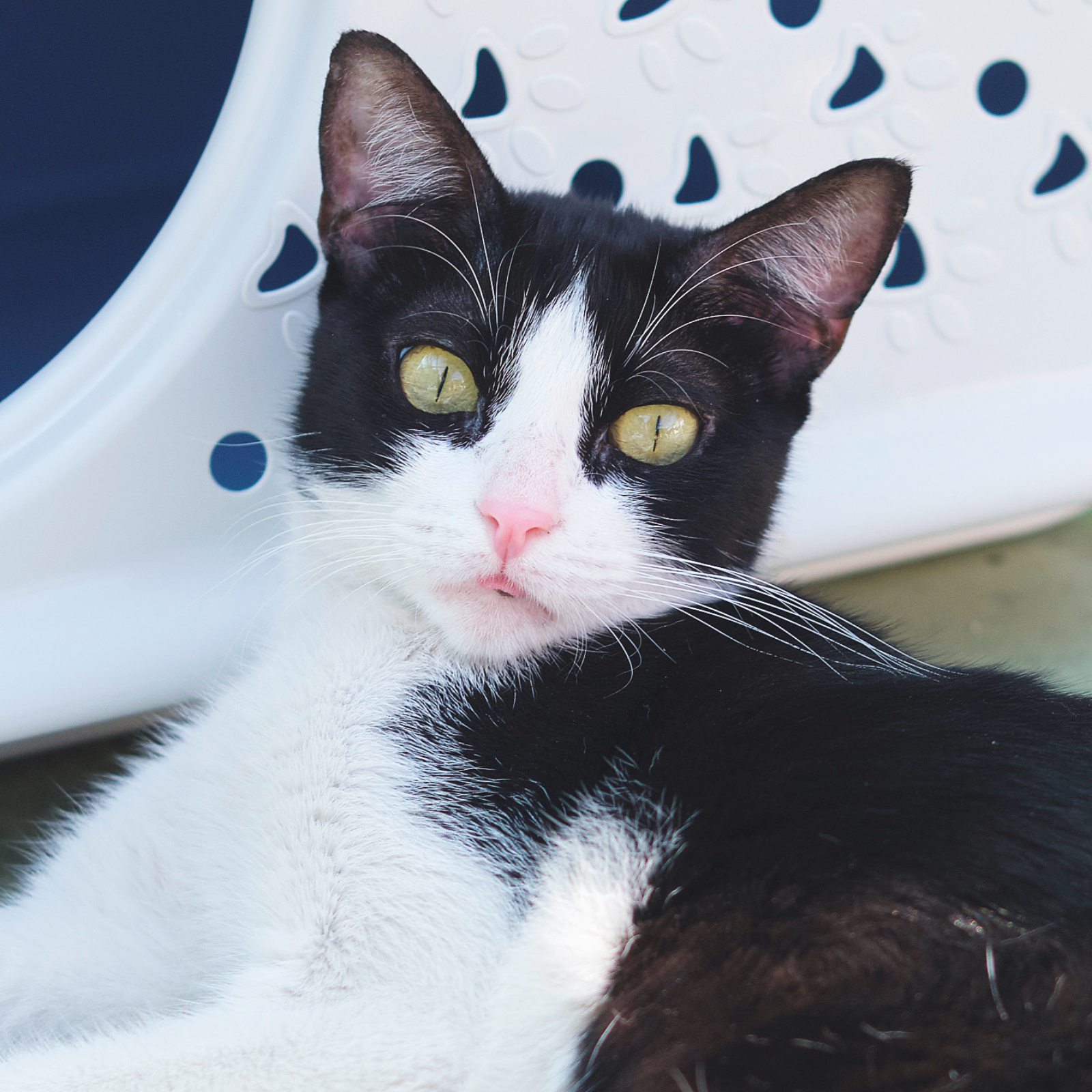 La Curie és una gateta molt joveneta i realment guapa. A més a més és molt carinyosa: no para de buscar i de fer mimos. Als altres gats, senzillament els tolera, no hi interactua, però tampoc sembla que li facin massa nosa. Si esteu pensant en adoptar una gateta, val la pena que la vingueu a conèixer perquè és una gateta dolça i encantadora. Podeu preguntar per la bona de la Curie prement el botó ADOPTAME que teniu en verd a sota mateix d'aquesta descripció.