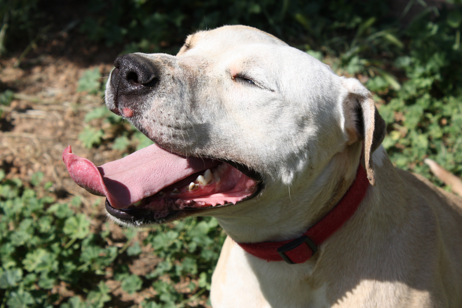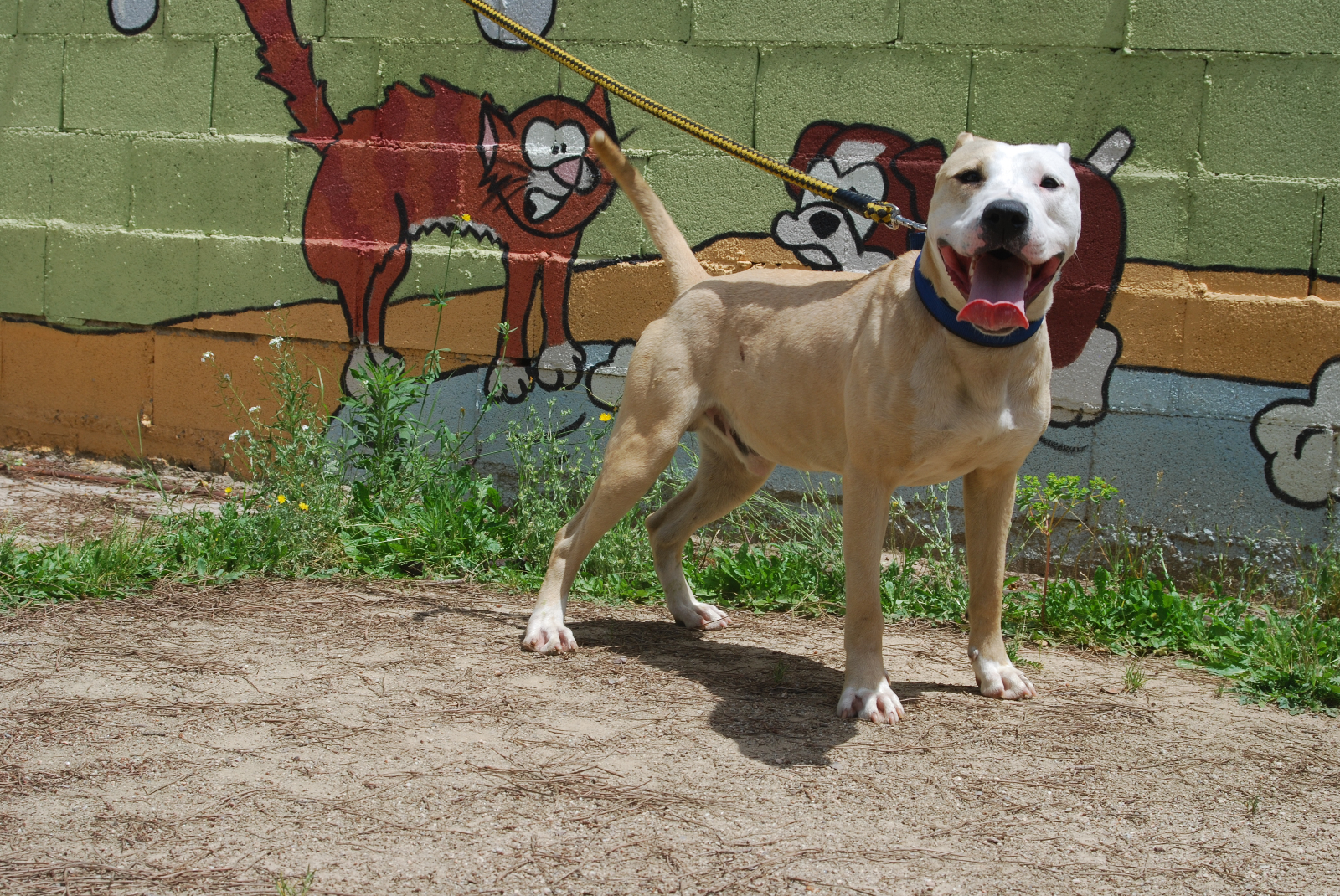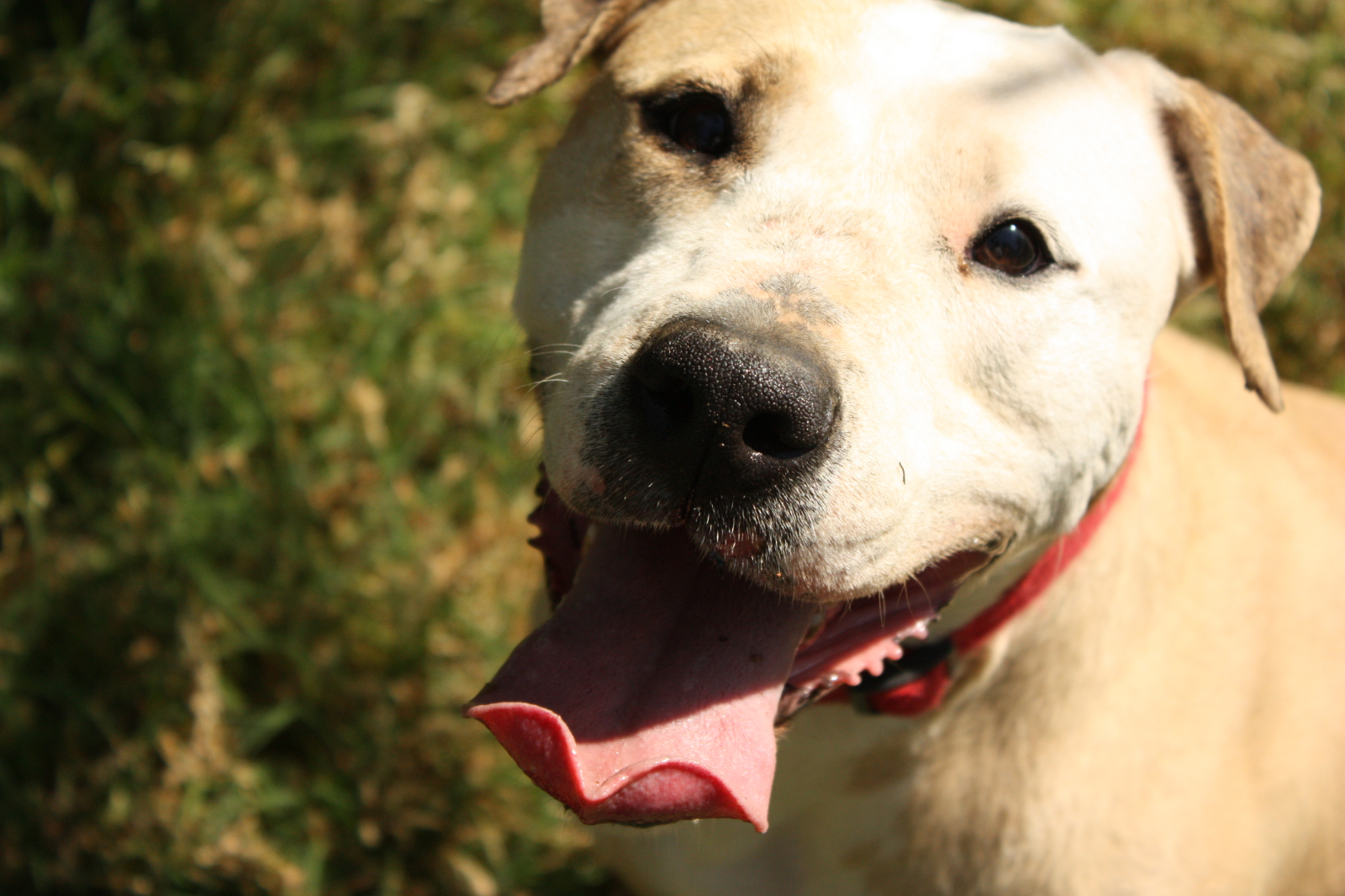 Jumbo entró en la protectora por un decomiso policial. Es un perro activo y juguetón. Con personas es un amor, cariñoso y atento. Puede convivir perfectamente con otros perros, es un poco brutote jugando, pero nunca con malas intenciones. Es positivo en Leishmania, pero tiene la enfermedad controlada gracias a una medicación diaria. Por razón de su raza, necesita seguro y licencia para Perros Potencialmente Peligrosos.