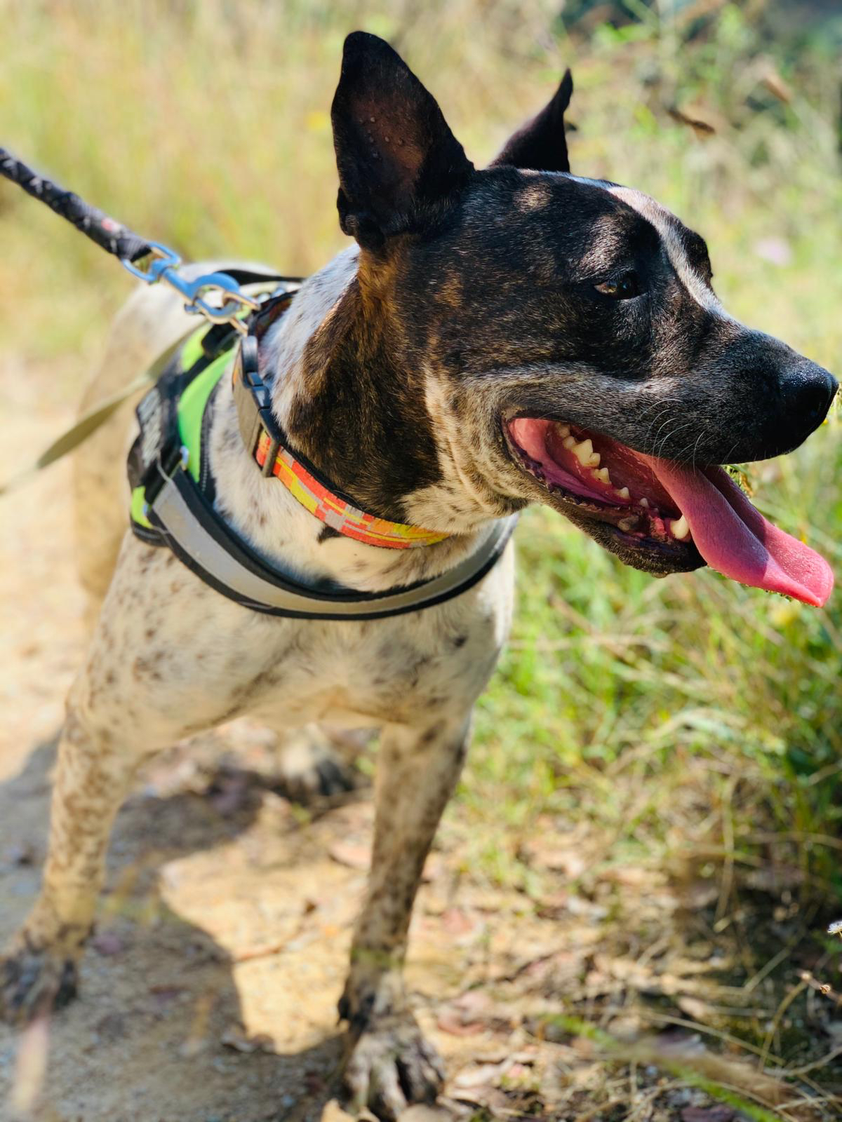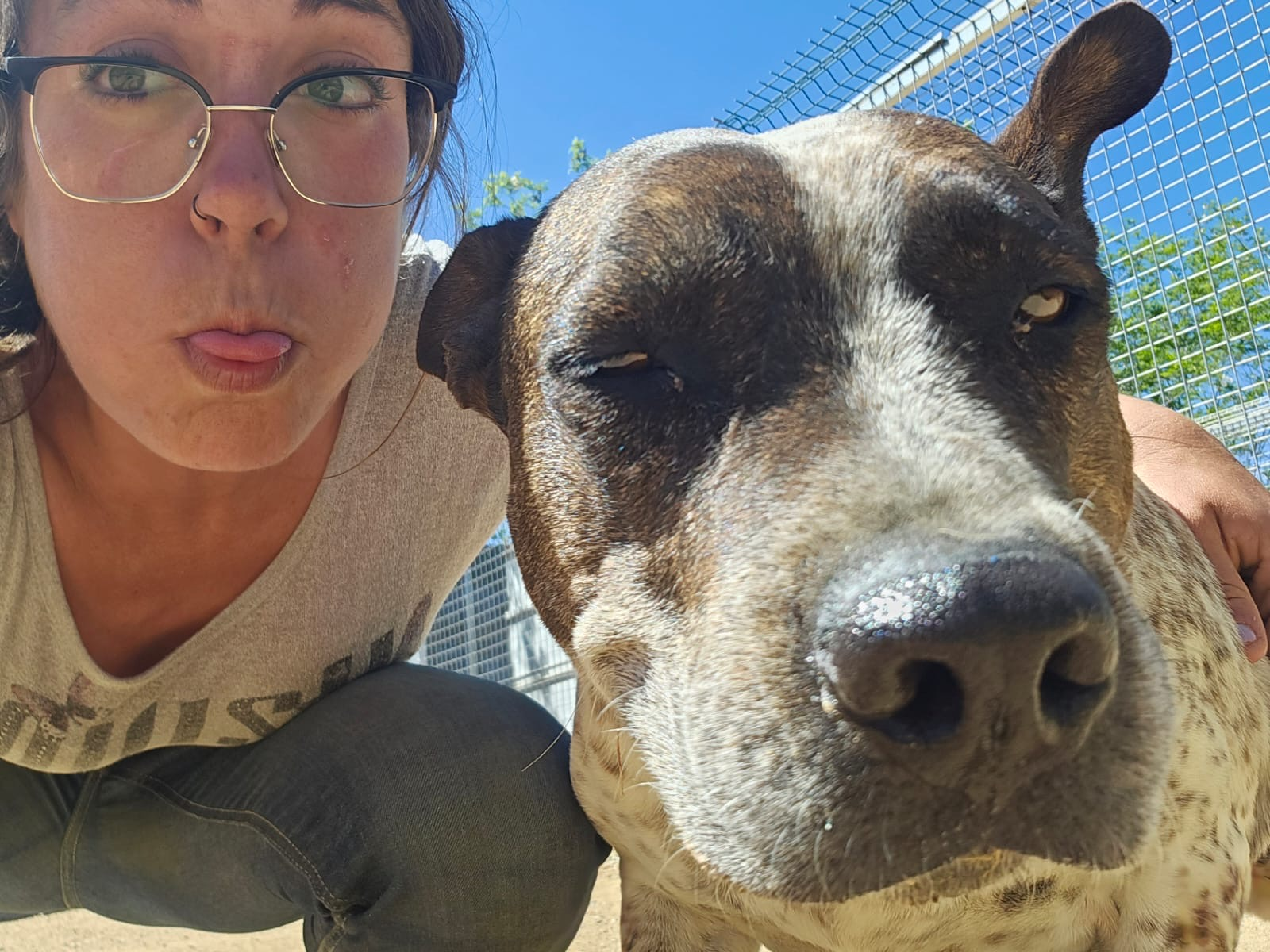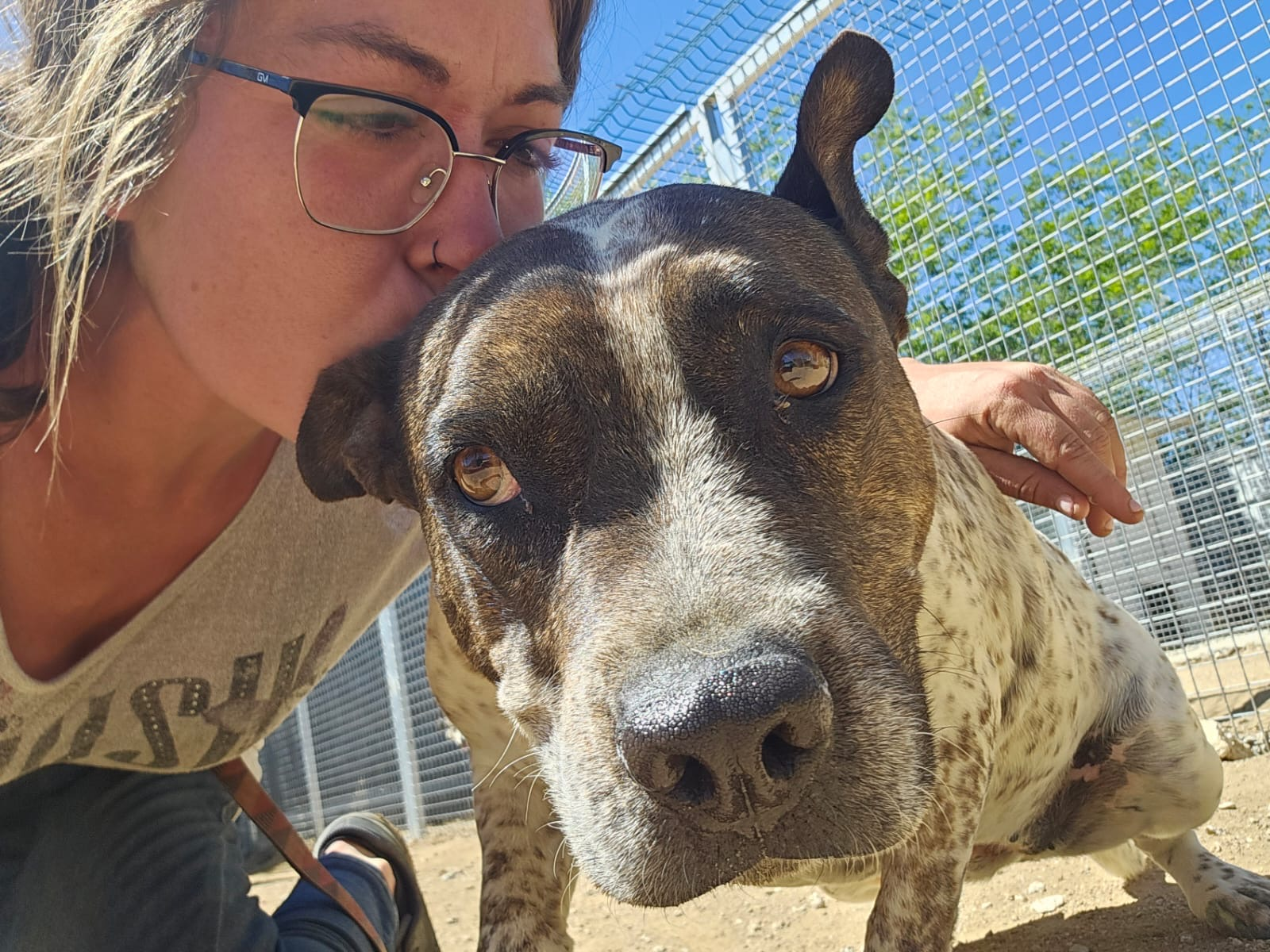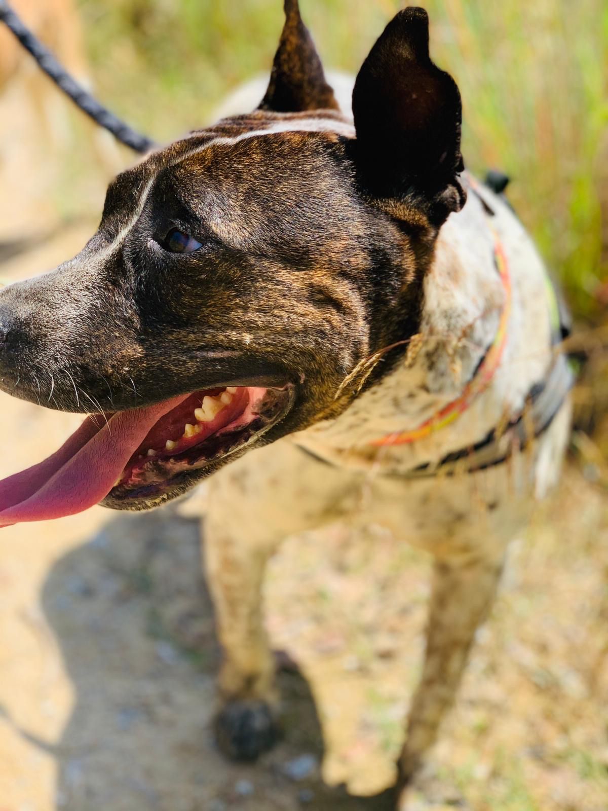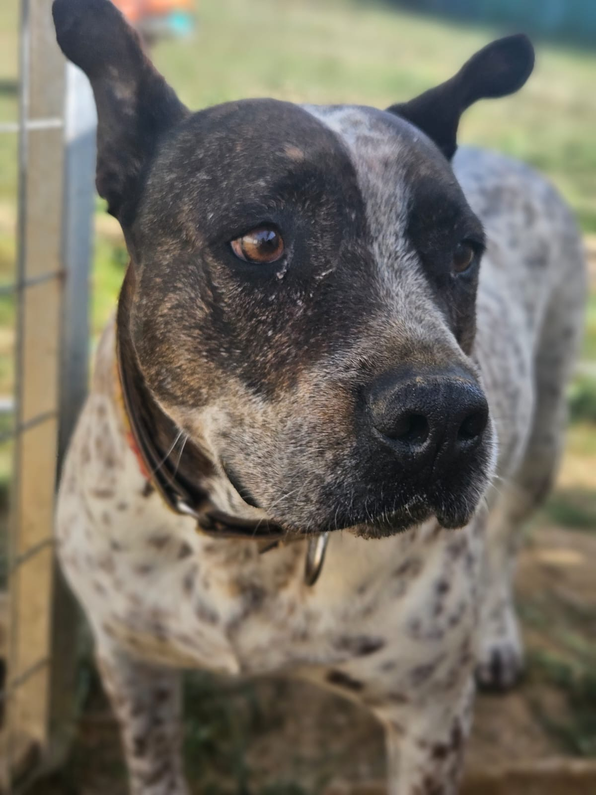 💚 Bianka llegó hace años ya a la prote, rescatada y traída desde Granada donde su destino era morir sacrificada. Es una mestiza de American Staffordshire, de tamaño mediano. Es miedosa pero tiene un carácter muy noble.