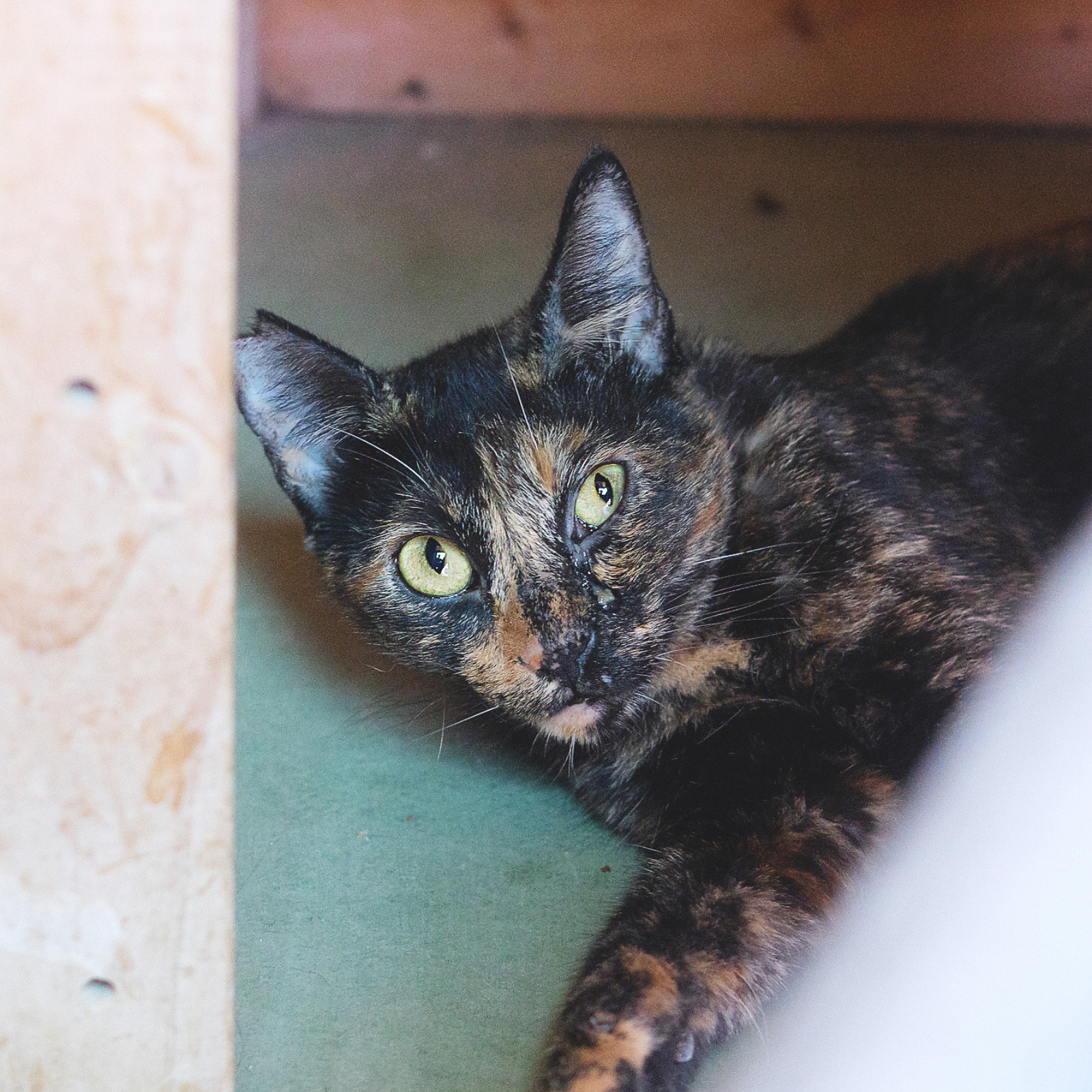 Goda se recogió en una colonia de gatos. Allí, perseguía a la gente reclamando caricias. Aunque en el refugio está un poco estresada con la presencia de tantos gatos, es una gata cariñosa y buscamos para ella una adopción. Es preciosa! Si le quieres dar una oportunidad, escribe a