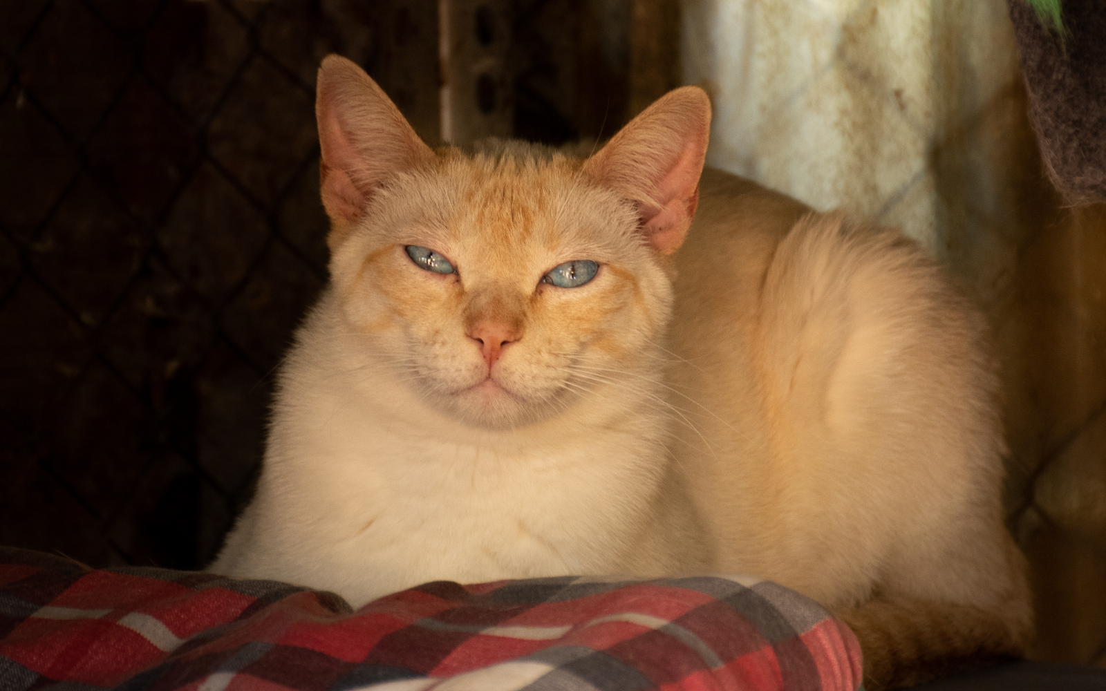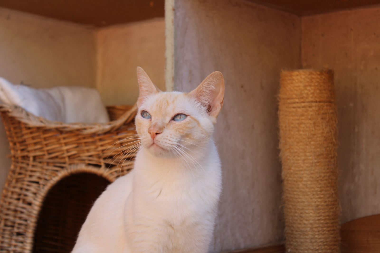 En Floqui és un preciós gat blanc i marró d’aproximadament 3 anys d’edat. Porta gairebé tota la seva vida al refugi degut al seu caràcter tímid i reservat. No es deixa tocar, però sempre intenta interactuar amb tu, ja sigui observant-te des de la distància o bé asseient-se a prop teu per gaudir de molts moments junts.
