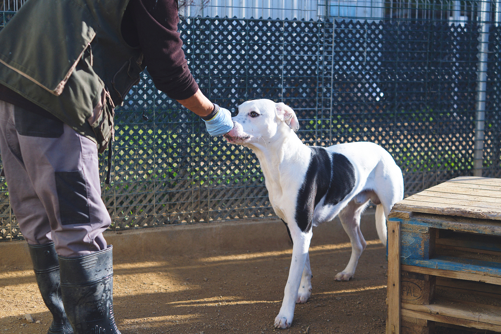 En Panda és un gosset que no deu haver tingut un passat gens bo, perquè ens va arribar amb molta por a tot i a tothom. De mica en mica va agafant confiança, i els cuidadors ens diuen que és un gos molt bo, tot i que encara té força por. Busquem pel bo del Panda una família que tingui ganes d'ajudar-lo a recuperar la confiança en les persones i, sobretot, que tingui moltes ganes d'estimar-lo molt. Millor família sense nens. Si li voleu donar una oportunitat al preciós Panda, podeu preguntar per ell escrivint a