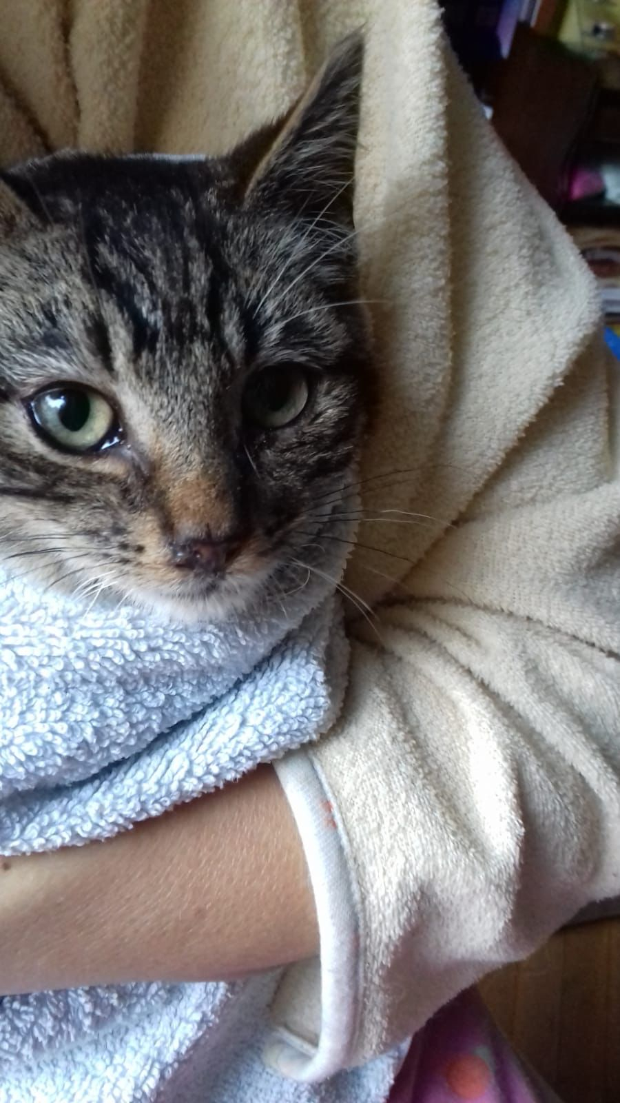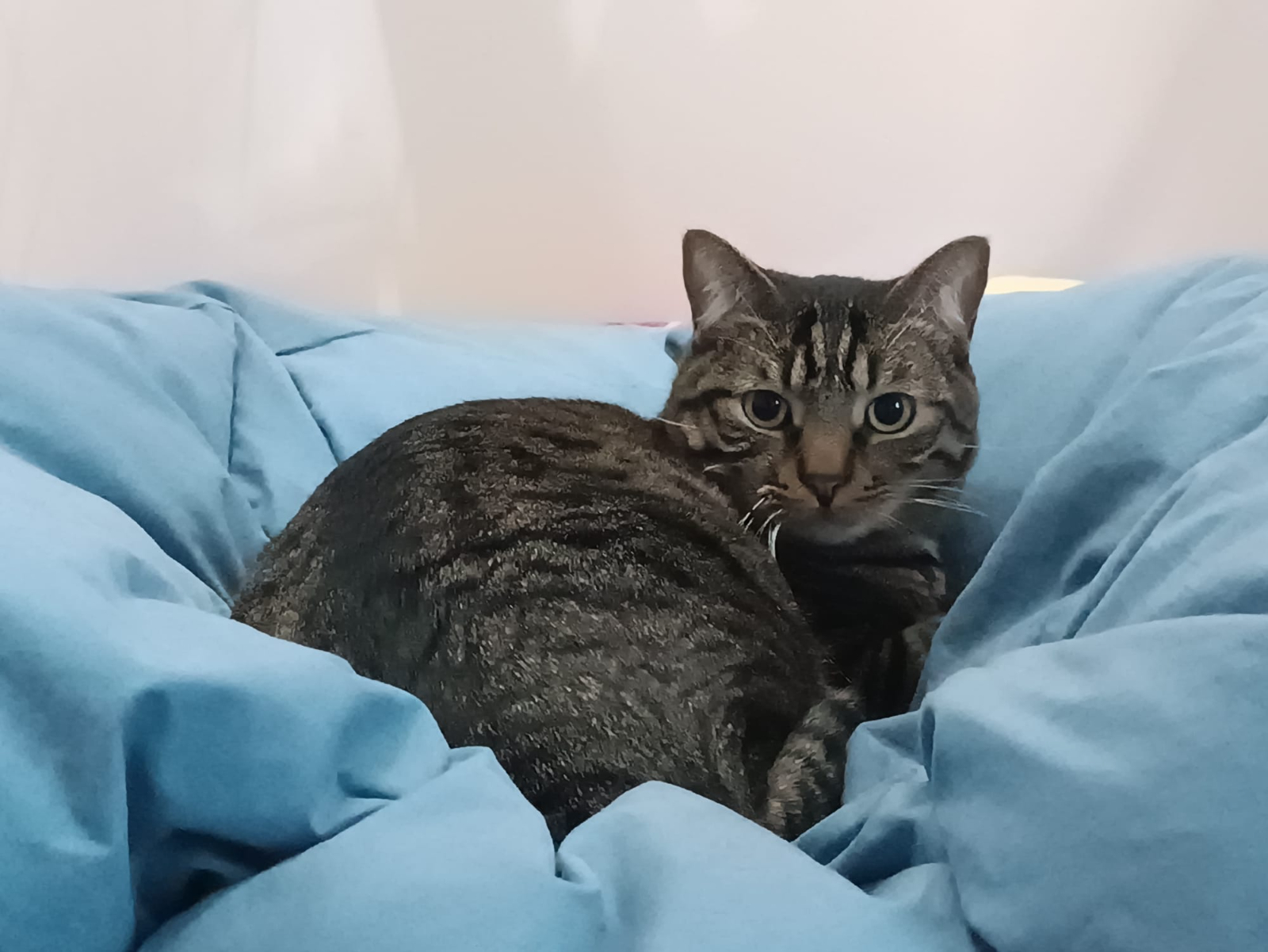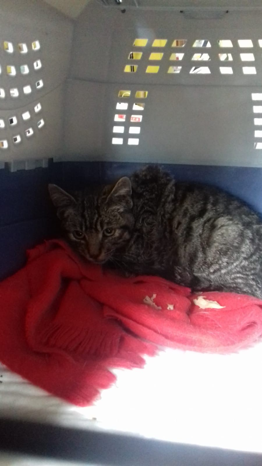 Es un gatito miedoso que necesita tiempo, cariño y paciencia, y estamos convencidas de que daremos con la familia perfecta para él.