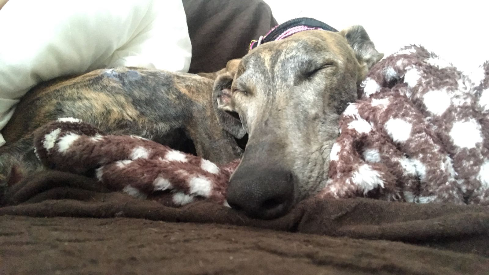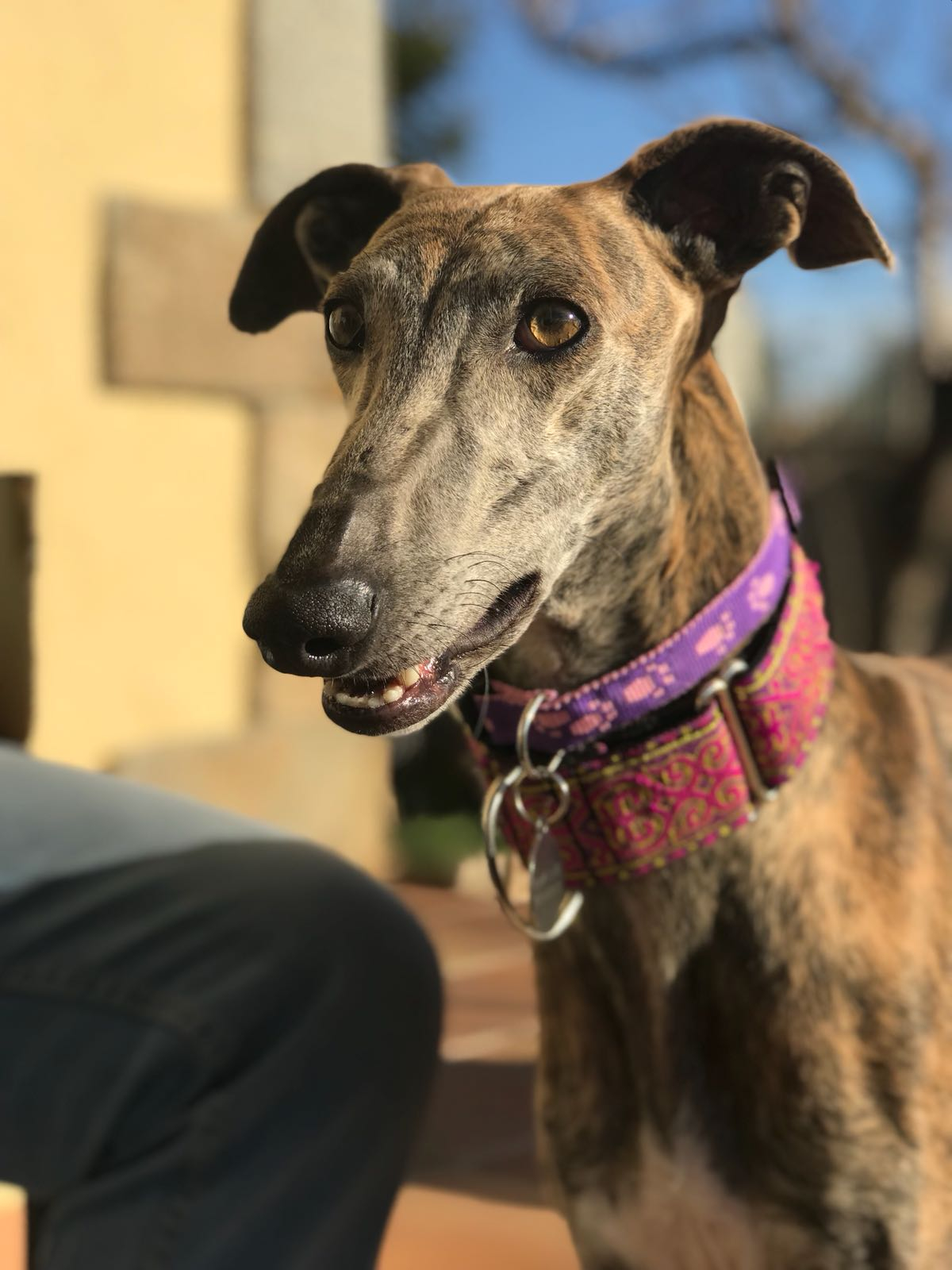 Azul es una galguita muy especial, por eso necesita una familia especial y que tenga paciencia y entienda sus miedos. Es un poco desconfiada, pero cuando ya sabe quien es su familia es puro amor. En la calle en zonas tranquilas va muy bien y tranquila, va un poco más nerviosa cuando vamos por sitios con más gente. En casa es súper buena y tranquila, hace sus cosas en la calle, aunque a veces cuando le cambias el horario se le escapa alguno. Le encanta ir en coche y va muy tranquila. No le gusta quedarse sola, es un poco llorona y es mejor que tenga un compañero perruno que le dé la tranquilidad que ella necesita! Azul es un tesoro, solo necesita tiempo para saber cuál es su sitio!