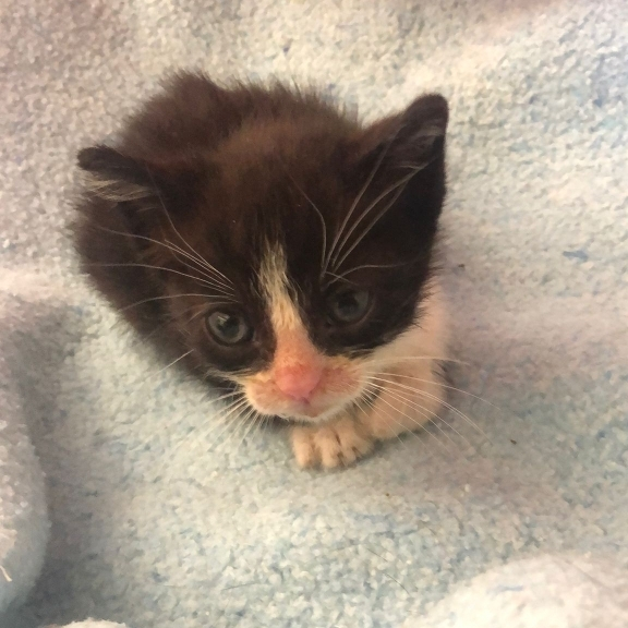 Este gatito es uno de los 5 gatitos de una camada recogida en la calle, sin la mamá.
