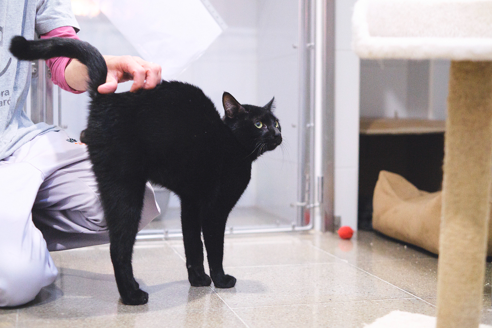 En Gamba és un gat encara molt jove, actiu i bo, que va arribar a la nostra protectora amb una fractura en una de les seves potes. Va caure d'un balcó, i després de trobar a la propietària, aquesta no va voler saber res més d'ell. Ara ja està operat i en fase de recuperació (encara necessita repòs uns dies més), i pot ser que li quedi una certa coixesa crònica (encara que no és segur). La família que l'adopti ha de cuidar-lo i ser cautelosa, perquè és un gat molt curiós i no volem que torni a caure mai més. Si voleu adoptar un gat molt bo i molt guapo, podeu preguntar per ell escrivint a