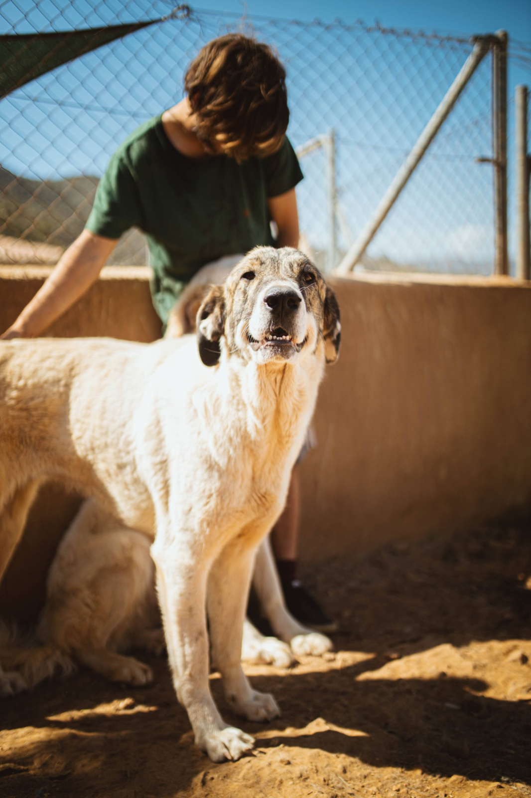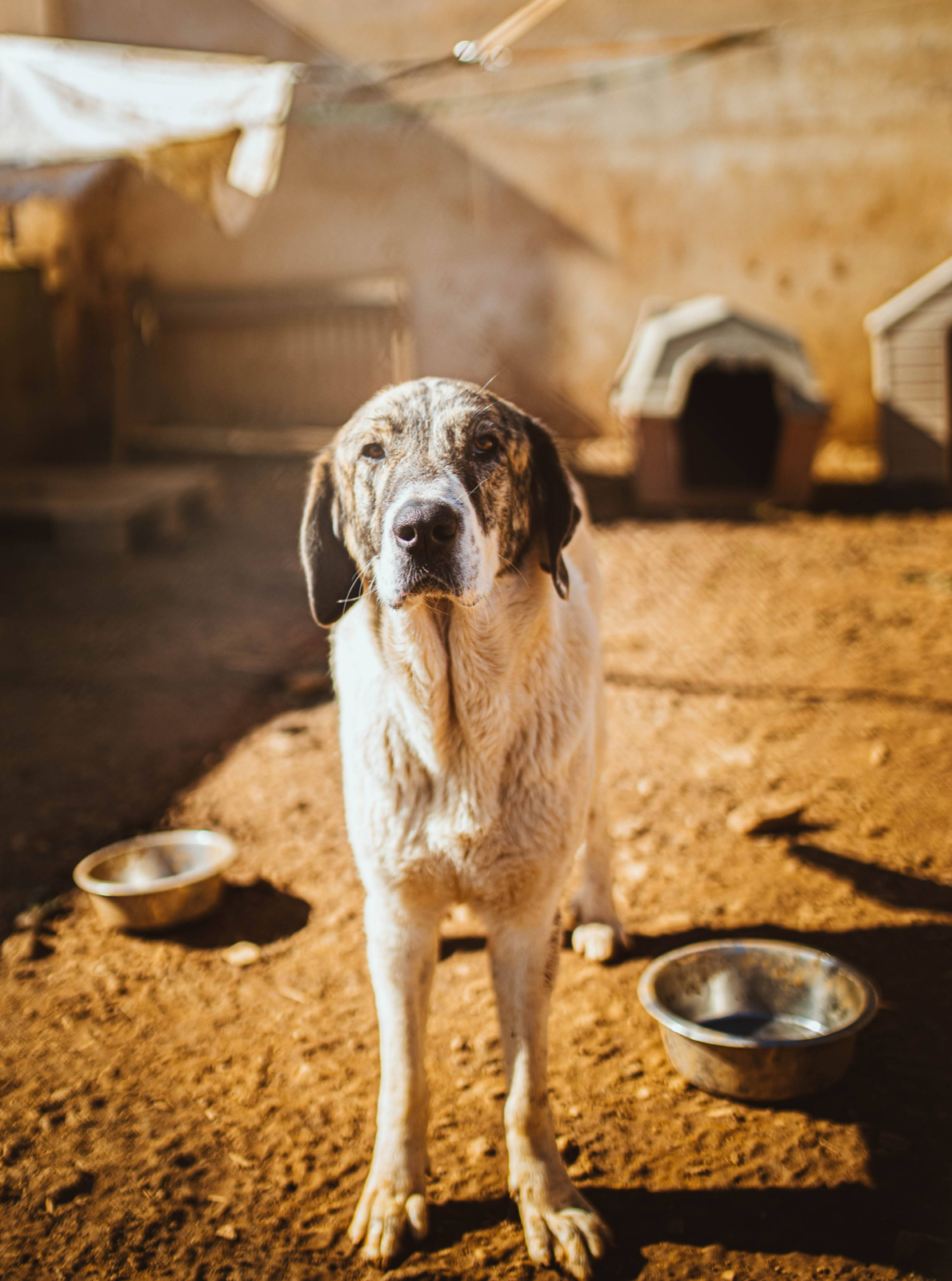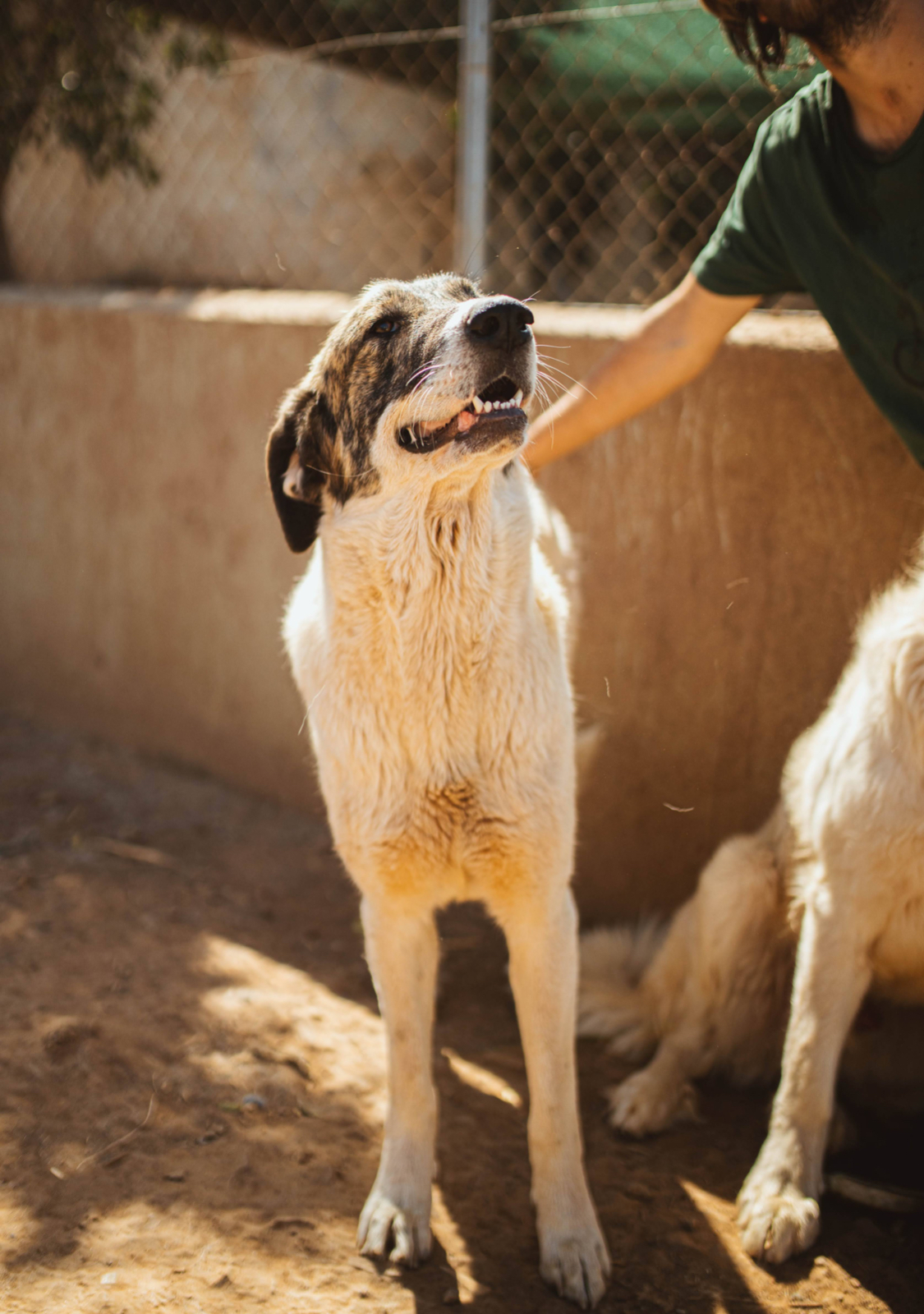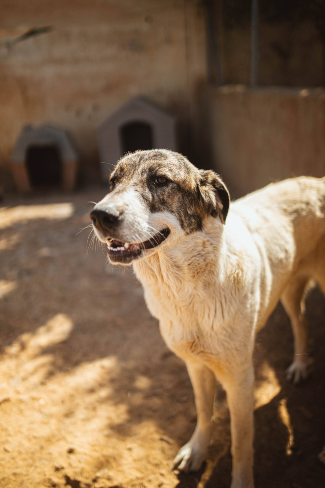 She has exotic looks for a Pyrenean Mastina cross, with tortoiseshell fur around her eyes and creamy white coat. She is a joy of a dog and would be a happy face around the family home. She gets on with other dogs and a friend would be a bonus, to burn off some young dog energy - Diana is only just a year old. We would love her tone adopted with her brother, but think they would adapt to being apart.