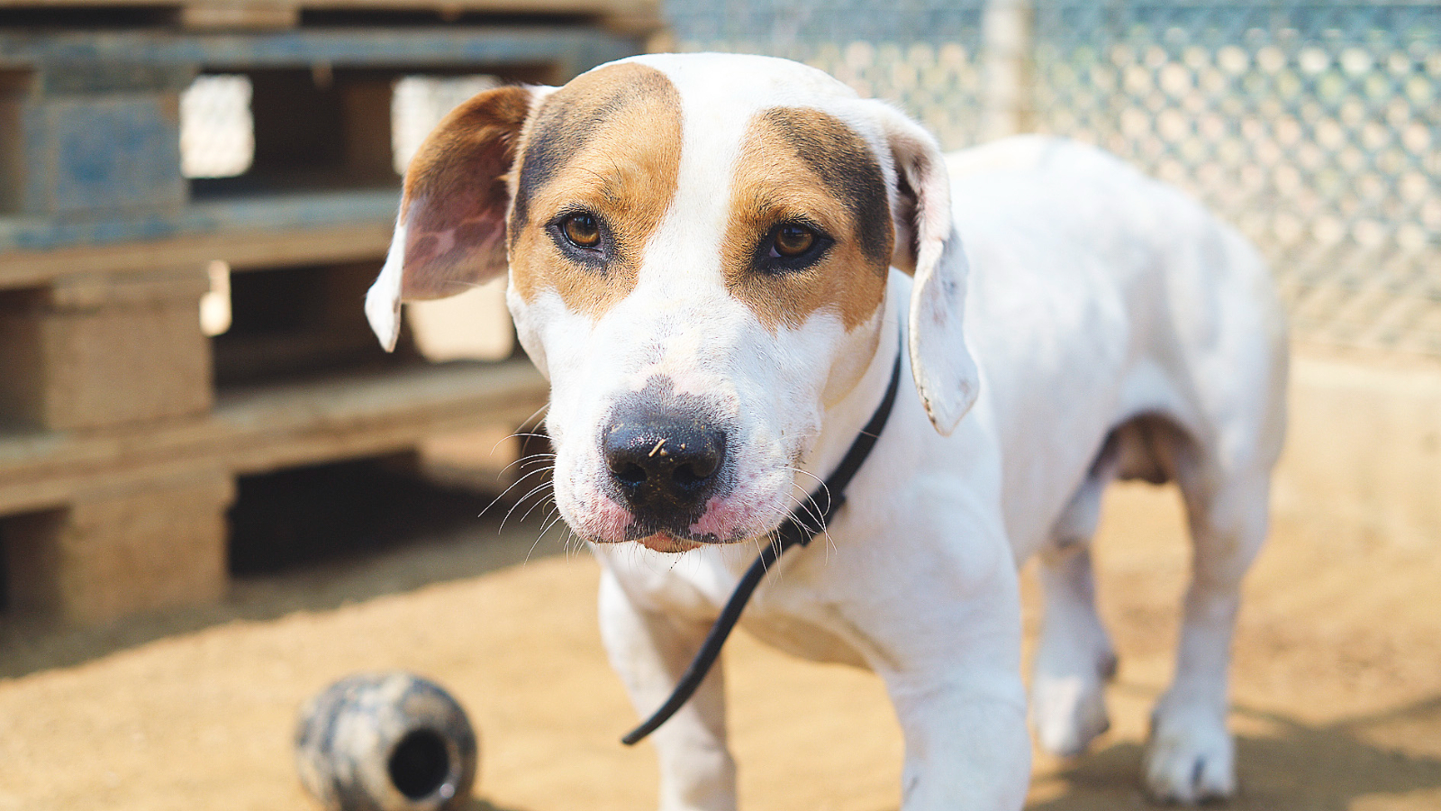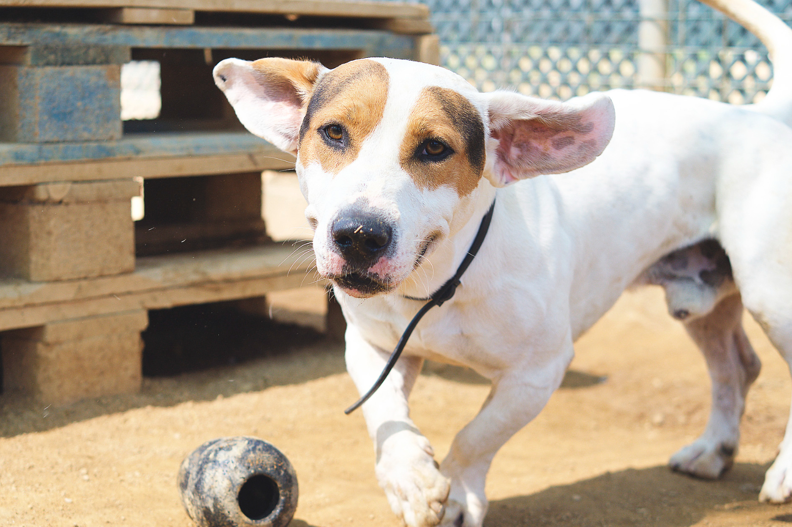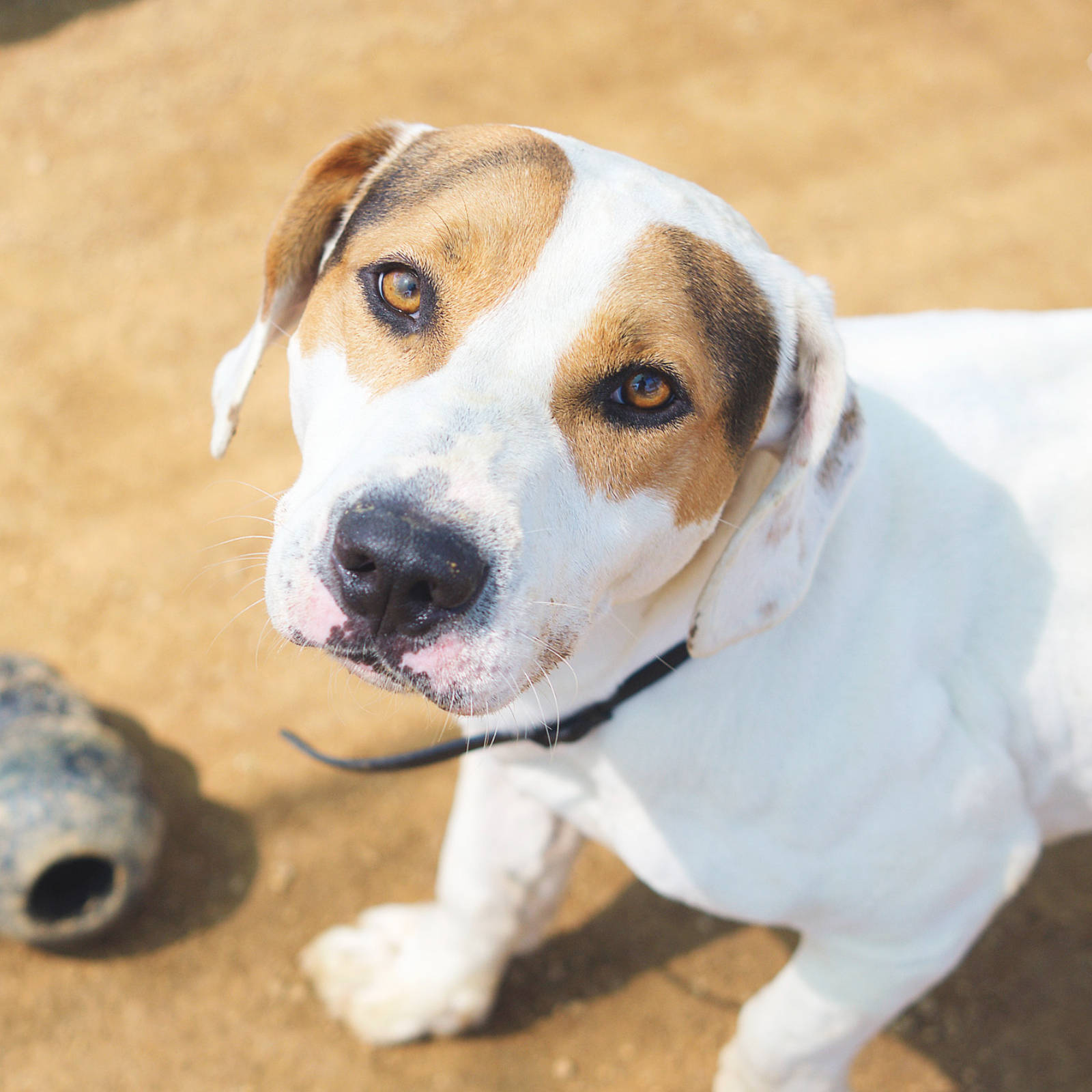En Kratos és jove, preciós i simpàtic! Malgrat el que pugui semblar la seva mida és entre petit-mitjà. Sabem que tenia família però han marxat del país i Kratos ha quedat enrere :-( Segons ens van explicar té bona relació amb altres gossos, excepte amb algun mascle (amb gats no té bona relació). Ara l'única cosa que sabem és que necessita sentir de nou l'amor d'una llar. Per a més informació, podeu preguntar per ell prement l'enllaç d'adopció que teniu en verd a sota mateix d'aquesta descripció.