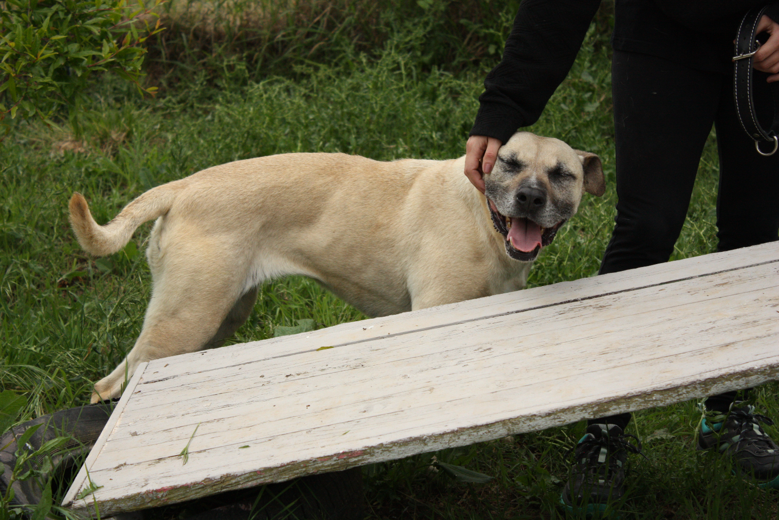 Bimba es una perra tranquila y cariñosa. Con personas, haciendo una presentación previa, es cariñosa y juguetona. Le encanta salir a pasear. Con otros perros, haciendo bien las presentaciones y en ambientes sin estrés se relaciona de forma correcta. Desde el equipo de comportamiento ofrecemos asesoramiento y pautas de convivencia a los adoptantes para facilitar su adaptación a la nueva familia. Por razón de su raza, necesita seguro y licencia para Perros Potencialmente Peligrosos.