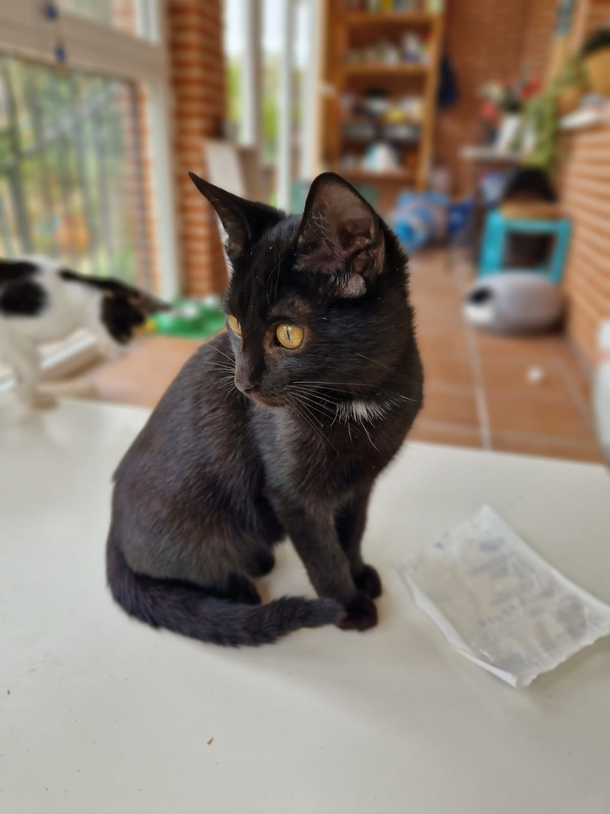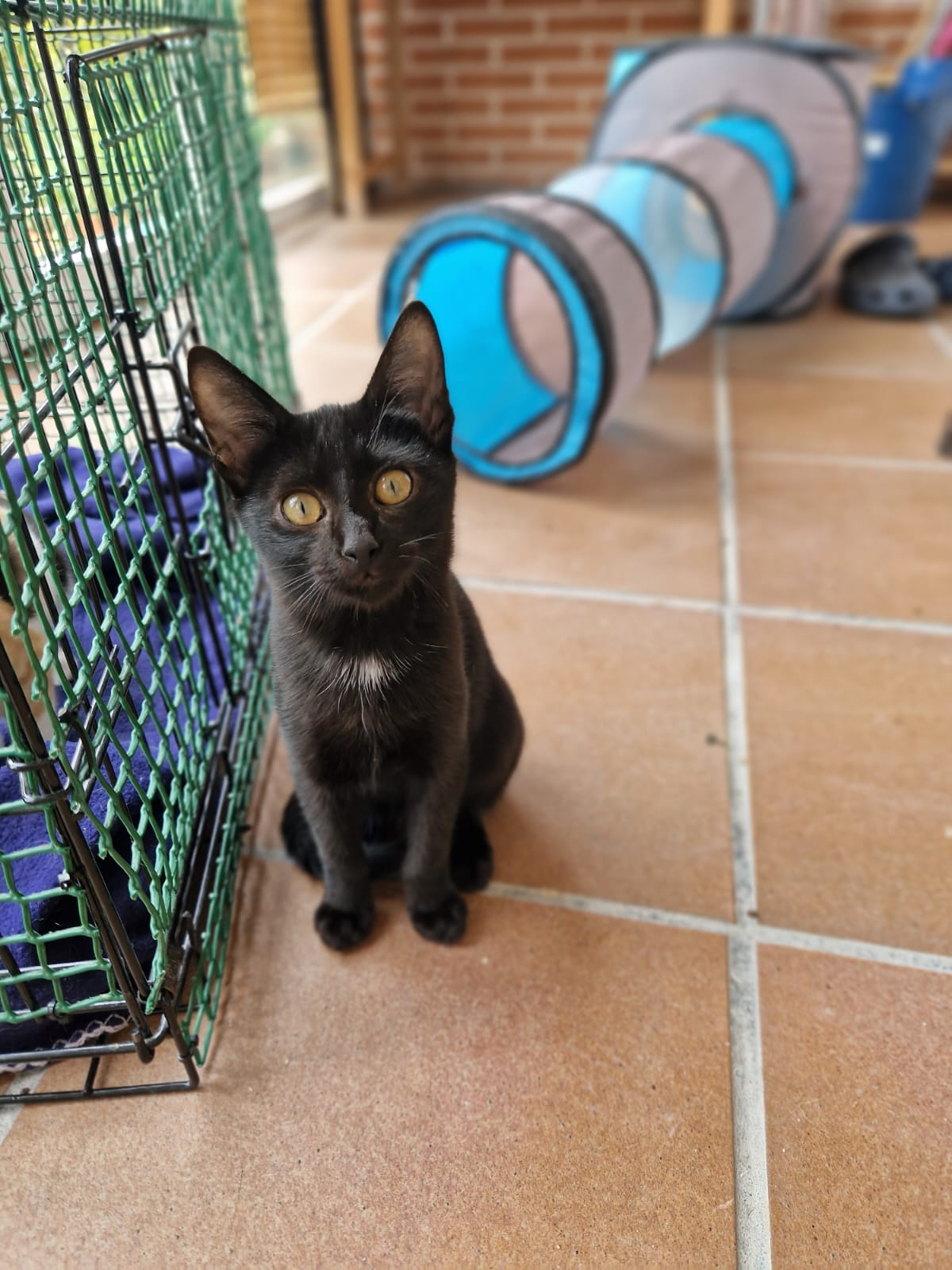 Recogimos a Negrito junto a sus tres hermanos y a su mamá en la calle debido a que la mami estaba demasiado débil para poder hacerse cargo de sus cuatro hijos, pero con amor, cuidandos y calorcito consiguió sacarlos adelante. Negrito es una panterita muy juguetona y sociable, a la que me encanta jugar con sus hermanos y las latitas.