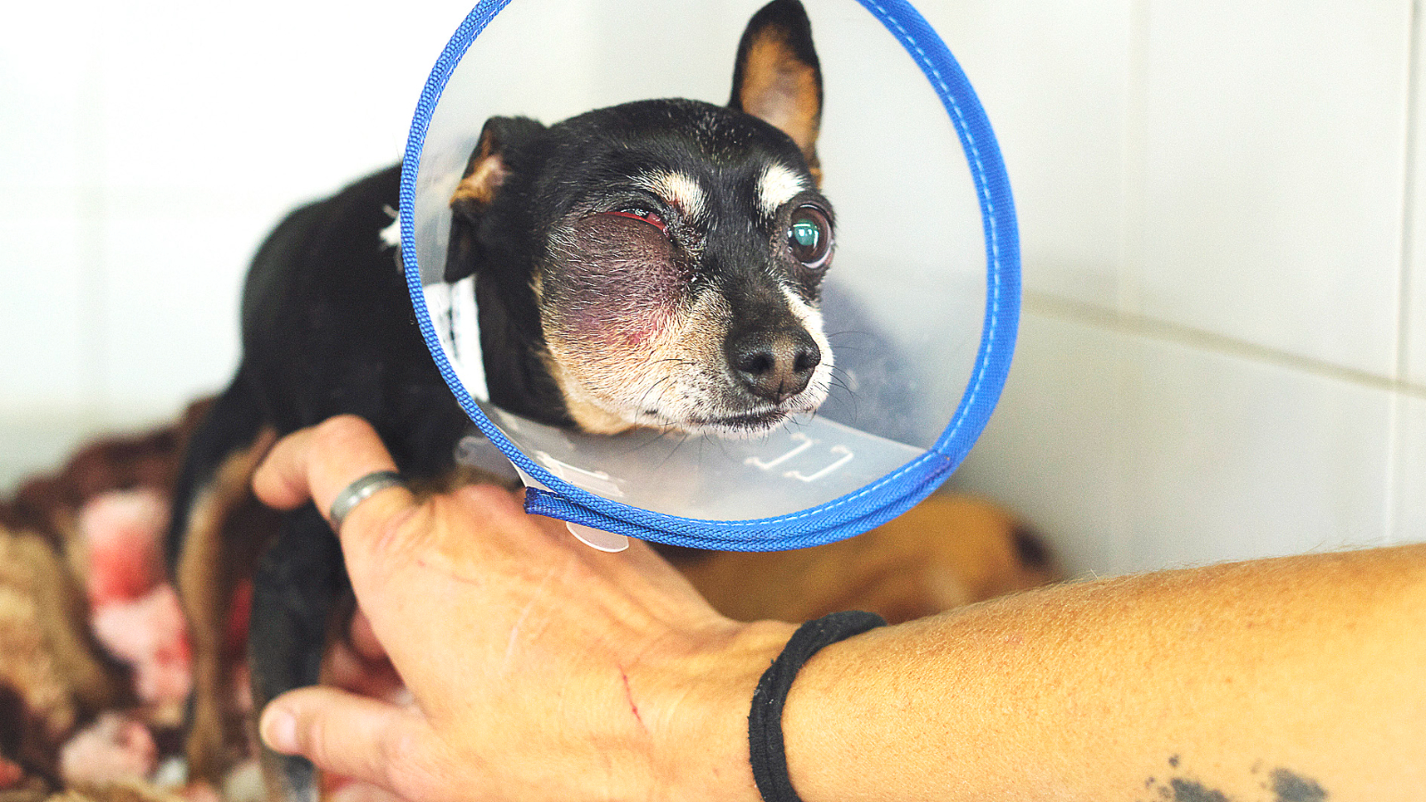 Aquesta iaia de les fotografies és la Kira i necessita amb urgència una acollida terapèutica, i ha de ser no gaire lluny de Mataró! Aquesta gosseta té 14 anys i va ser recollida a Badalona l'1 de març. Té xip, però no localitzem als propietaris, i de moment no es pot donar en adopció. No volem que visqui en el refugi: té un tumor maligne inoperable a la cara i, ara mateix, només podem provar de fer-li quimioteràpia per a millorar la seva qualitat de vida, però no sabem com evolucionarà. Necessitem una casa d'acollida, a Mataró o rodalies, perquè hauran de venir a la nostra clínica per a fer els controls periòdics. La Kira és una gosseta molt bona i afectuosa i pot conviure amb altres gossos. Si voleu acollir a la Kira, cuidar-la i estimar-la molt, podeu preguntar per ella prement el botó que teniu en verd a sota mateix d'aquesta descripció.
