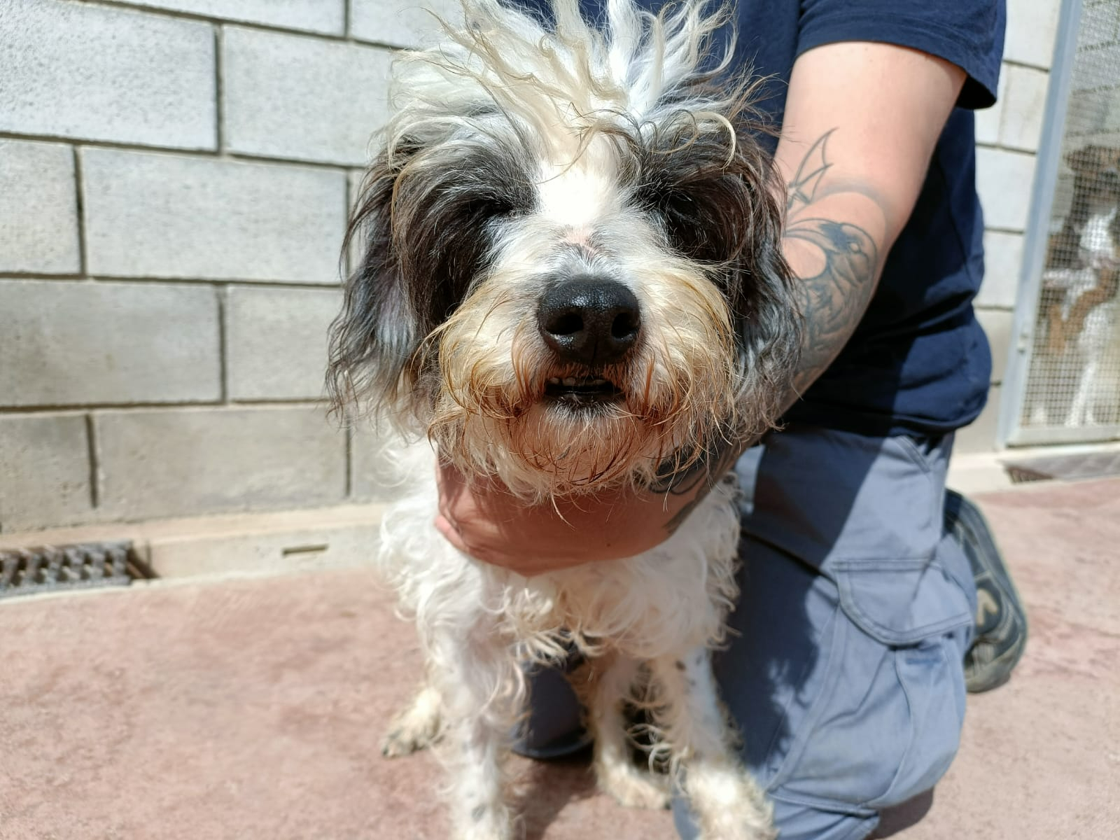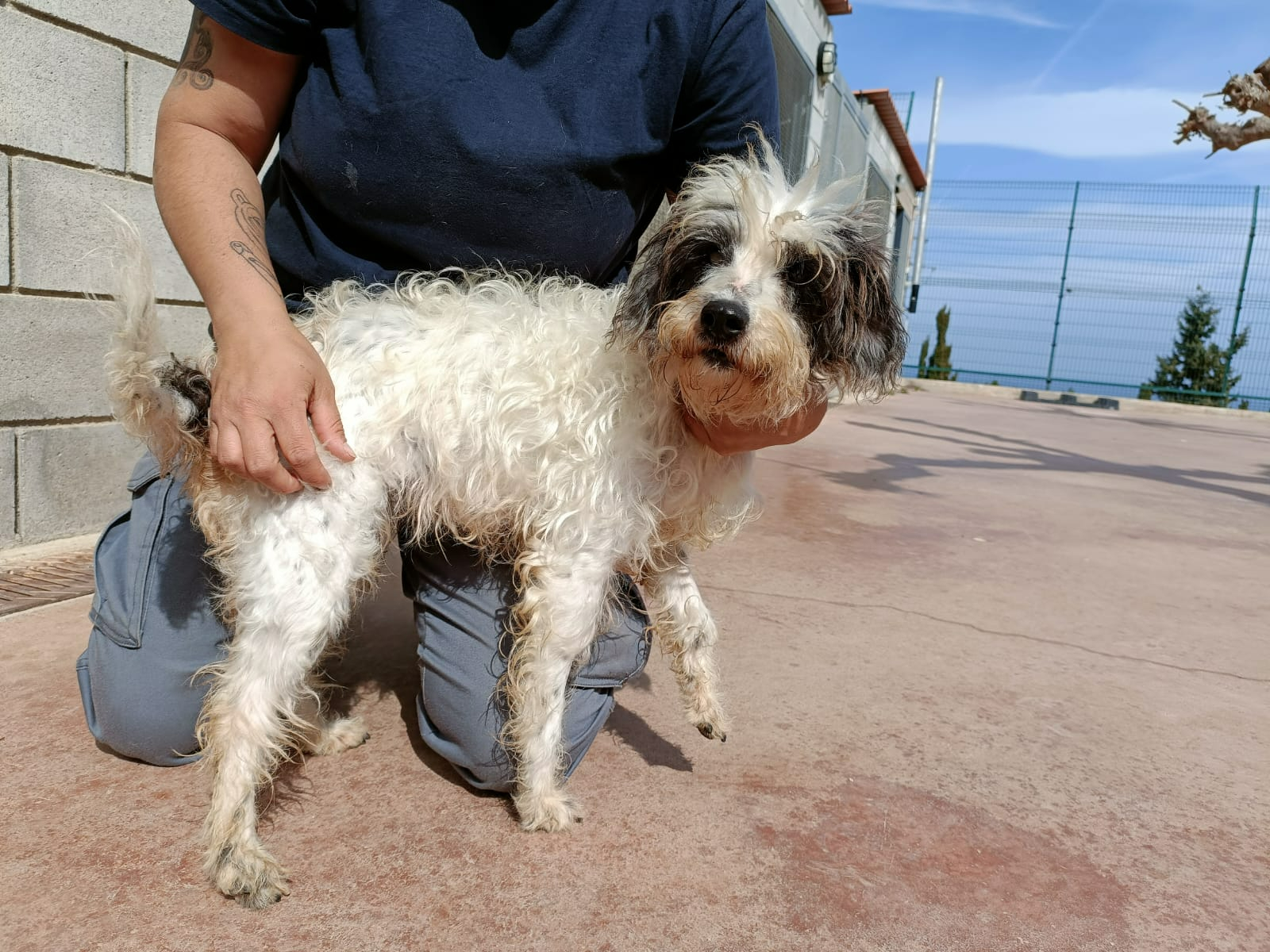 La Tara és una iaia: és cega i sorda, i us podem assegurar que se'ns trenca el cor per haver de tenir una gosseta com ella en un refugi d'animals... Quan ens hi acostem, s'espanta una mica, però quan ens reconeix adora que li fem carícies. Amb altres gossos no es relaciona gaire bé, segurament conseqüència de les seves limitacions físiques: si reaccionen ella també reacciona, però en general els evita. Mai podrem entendre com algú pot abandonar un animal, però abandonar una iaia en les seves condicions és directament de lesa humanitat... Si algú vol adoptar a la Tara perquè pugui tenir un final de vida digna, pregunteu per ella prement el botó ADOPTAME que teniu en verd a sota mateix d'aquesta descripció o, si ho preferiu, podeu venir directament al refugi que indica aquesta fitxa a l'apartat localització.
