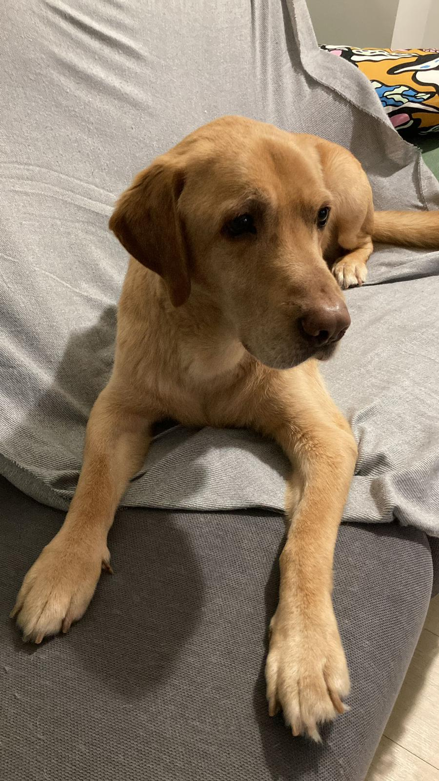 Dorito es un labrador de 7 años al que su familia ya no atendía desde hace tiempo, ha llegado a nosotros en mal estado, sin peinar, sin cepillar, cojeando y con otitis… pero ya ha pasado por el veterinario para pesar a remediar todos sus problemas.