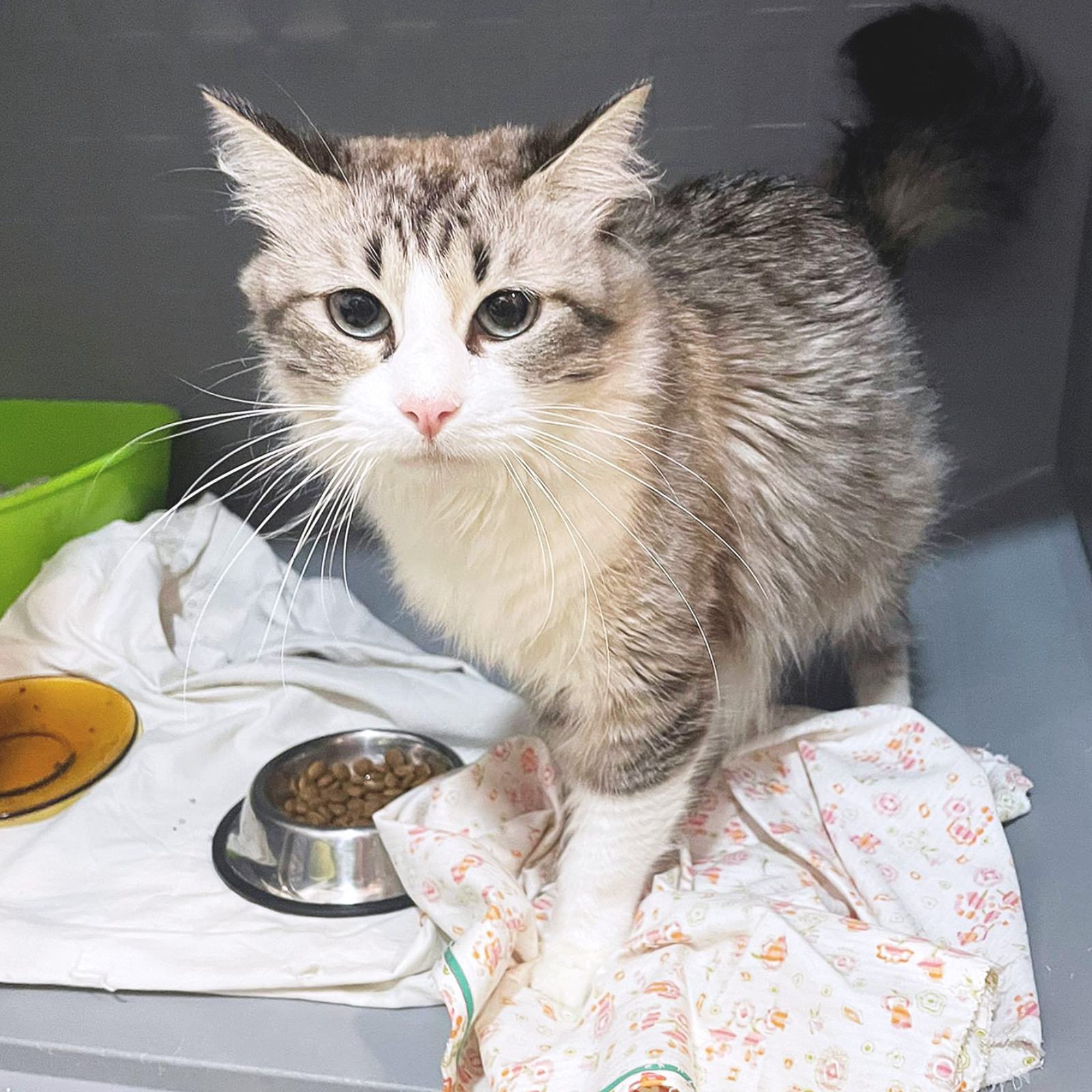Musa es una gatita preciosa y es imposible no enamorarse de ella. Tiene un carácter tímido y necesita tiempo para coger confianza. De hecho cuando hay gente que no conoce tiende a esconderse, pero con sus cuidadoras ya se muestra cariñosa y pide "mimos". Buscamos para la princesa Musa una familia de talante tranquilo que le quiera dar el tiempo que necesita para sentirse segura. Si queréis dar una oportunidad a esta gatita tan guapa, podéis preguntar por ella pulsando el botón ADOPTAME que tenéis en verde debajo mismo de esta descripción o, si lo preferís, podéis venir directamente al refugio que indica esta ficha en el apartado localización.