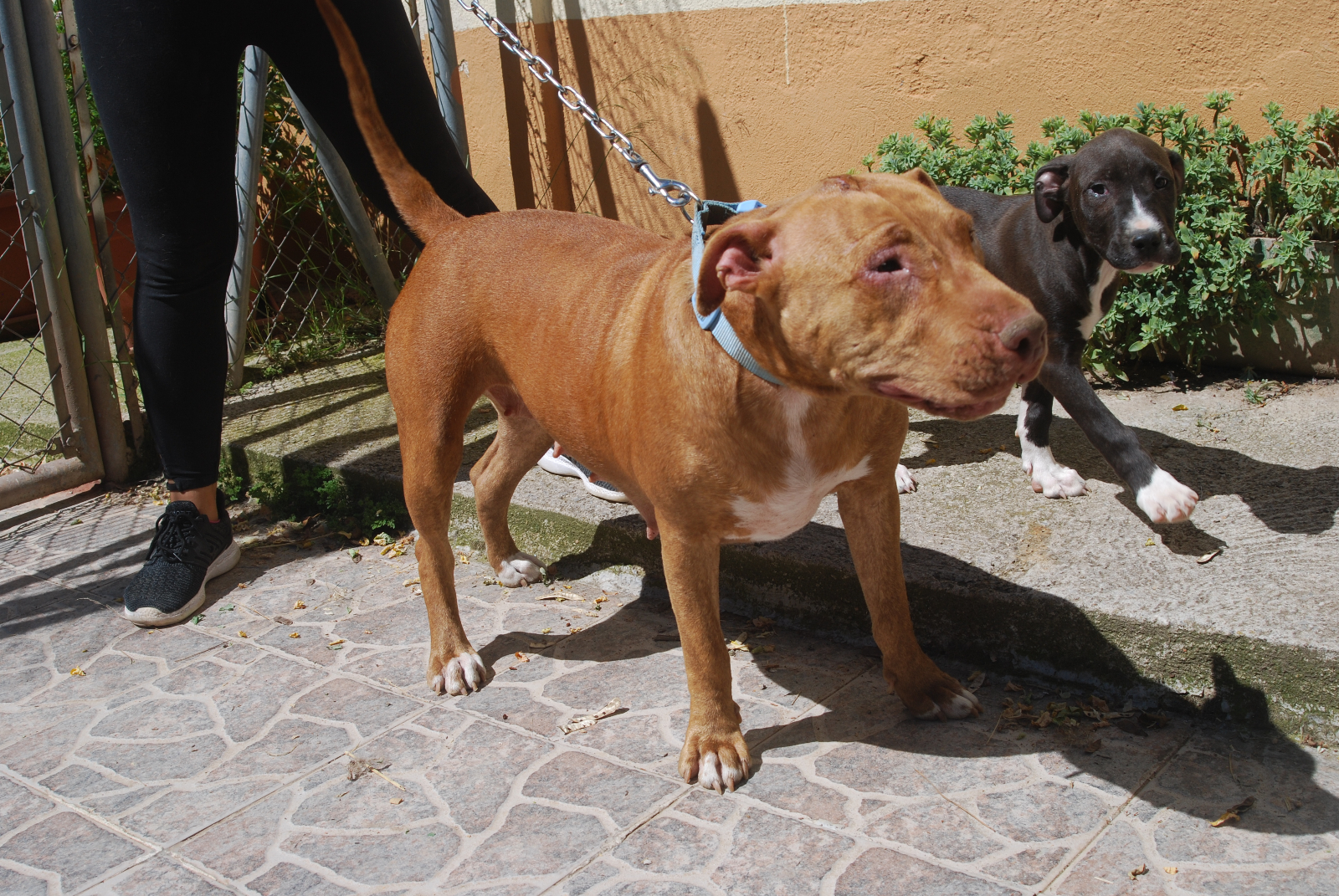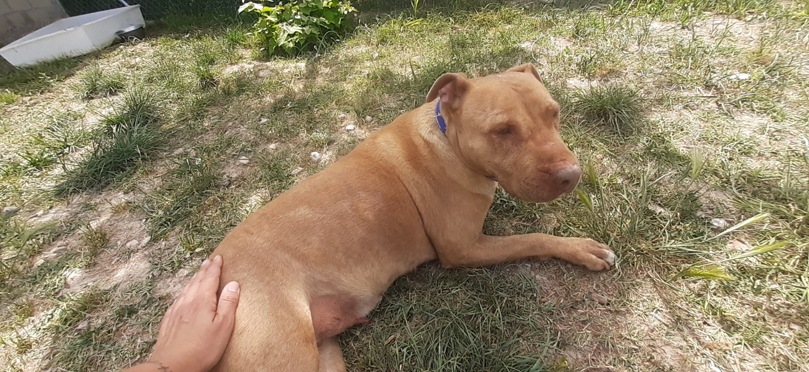 Petra es una madre que fue encontrada perdida con un cachorrito. Él tuvo suerte y salió adoptado rápidamente. No lleva muy bien vivir en el refugio y tiene un estrés bastante elevado. Haciendo bien las presentaciones y en ambientes sin estrés, se puede relacionar de forma correcta con otros perretes. Con personas es cariñosa y atenta. Por razón de su raza, necesita seguro y licencia para Perros Potencialmente Peligrosos.