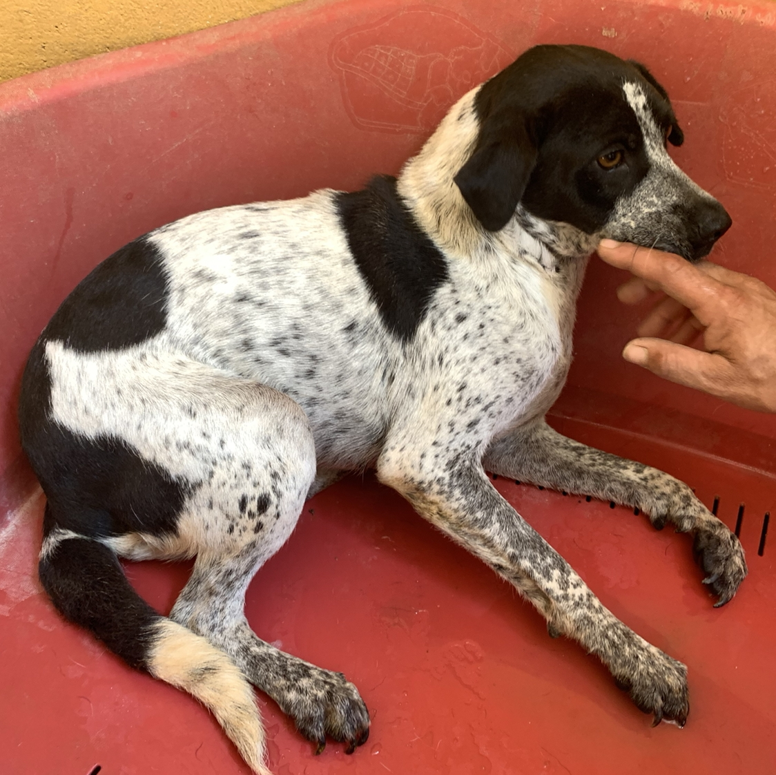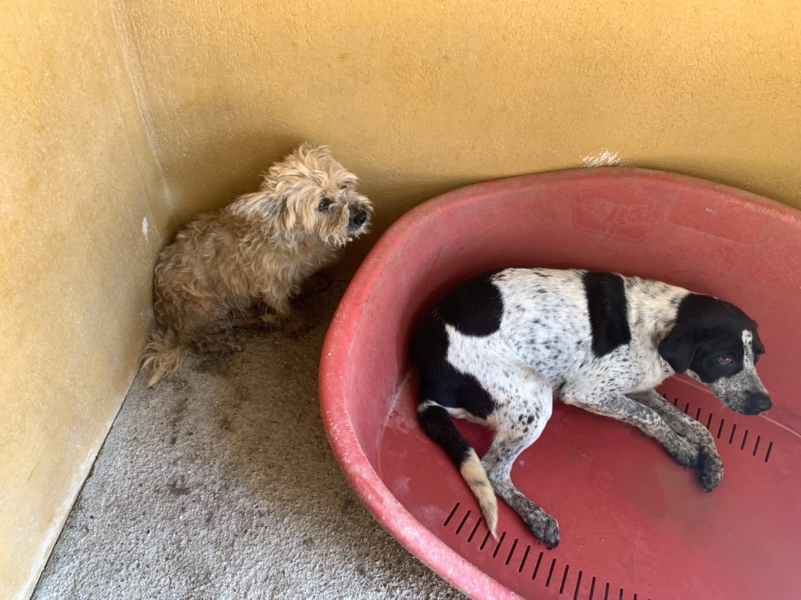Pero, la pobre perrita ni come ni quiere salir... entonces a final la hemos llevado a nuestro refugio, donde se encuentra con más perros, y por lo menos come y se mueve un poco. Buscamos para Lunita una acogida/adoptante con experiencia con perros bloqueados.