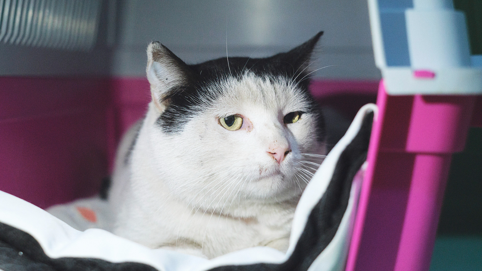 El pobre Wed es uno de aquellos casos que nos rompen el corazón... Lo encontramos en estado de shock, no sabemos si por una caída o por atropello. Se va recuperando bastante bien, pero le hemos hecho el test y ha dado positivo en inmunodeficiencia felina... Poco a poco va confiando en nosotros, y ya se deja acariciar por cuidadores y voluntarios. ¿Qué necesita el bueno de Wed? Una familia sin más gatos y que quiera tener la paciencia de darle tiempo para que se sienta seguro. Si queréis ayudar a un gato que lo tiene muy difícil preguntad por Wed entrando en el enlace de adopción que tenéis en verde al final de esta descripción.