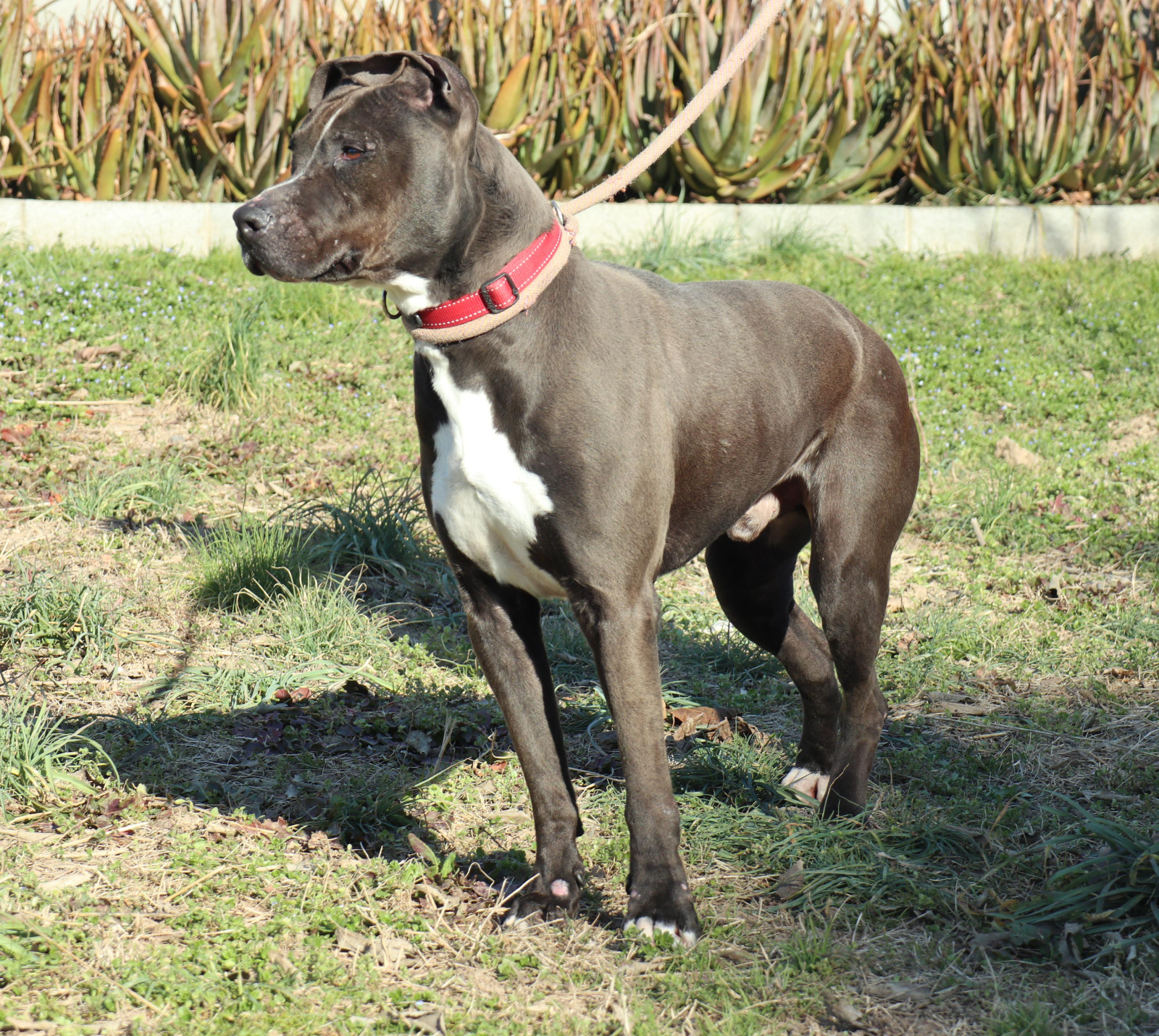 Sheldon llegó a la protectora identificado con microchip, pero nunca nadie vino a recuperarlo. Es un perrete activo, simpático y alegre. Con personas se relaciona perfectamente, es brutote pero muy cariñoso. Con otros perros, haciendo bien las presentaciones, se relaciona correctamente. Por razón de su raza, necesita seguro y licencia para Perros Potencialmente Peligrosos.